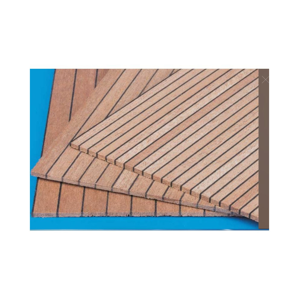 Krick Deck Plank deszka mahagóni fekete 7/0,5 mm. Vastagság 1,5mm, hézag 0,5mm fekete, deszka szélessége 7mm, deszkaméret 950x98x1,5mm. A deszkák különböző színű fából készült egyedi rétegekből vannak ragasztva. Alkalmas vizuálisan vonzó hajófedélzetekhez. Szélesebb fedélzetek szükség esetén egymáshoz ragaszthatók.