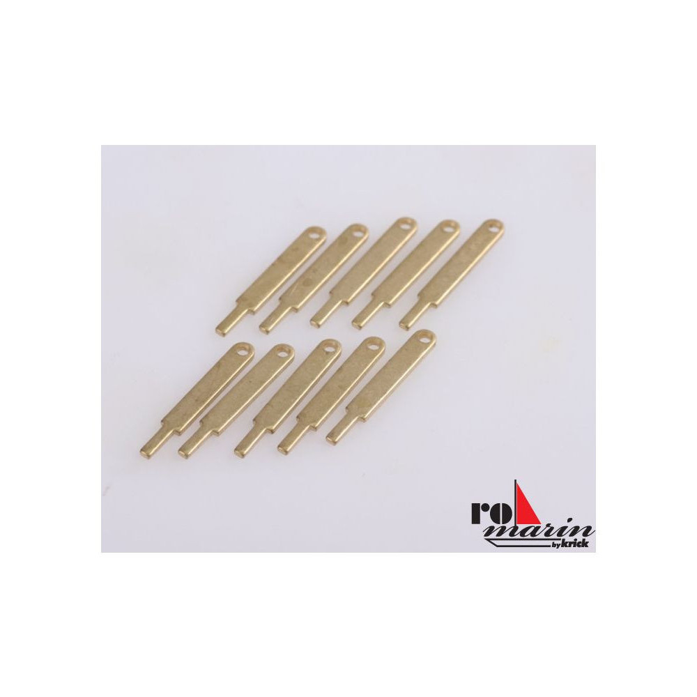 Lapos korlát tartó a ROMARIN-tól, 15 mm, 1x lyuk. Lapos sárgaréz kivitel, ideális ragasztáshoz vagy forrasztáshoz.