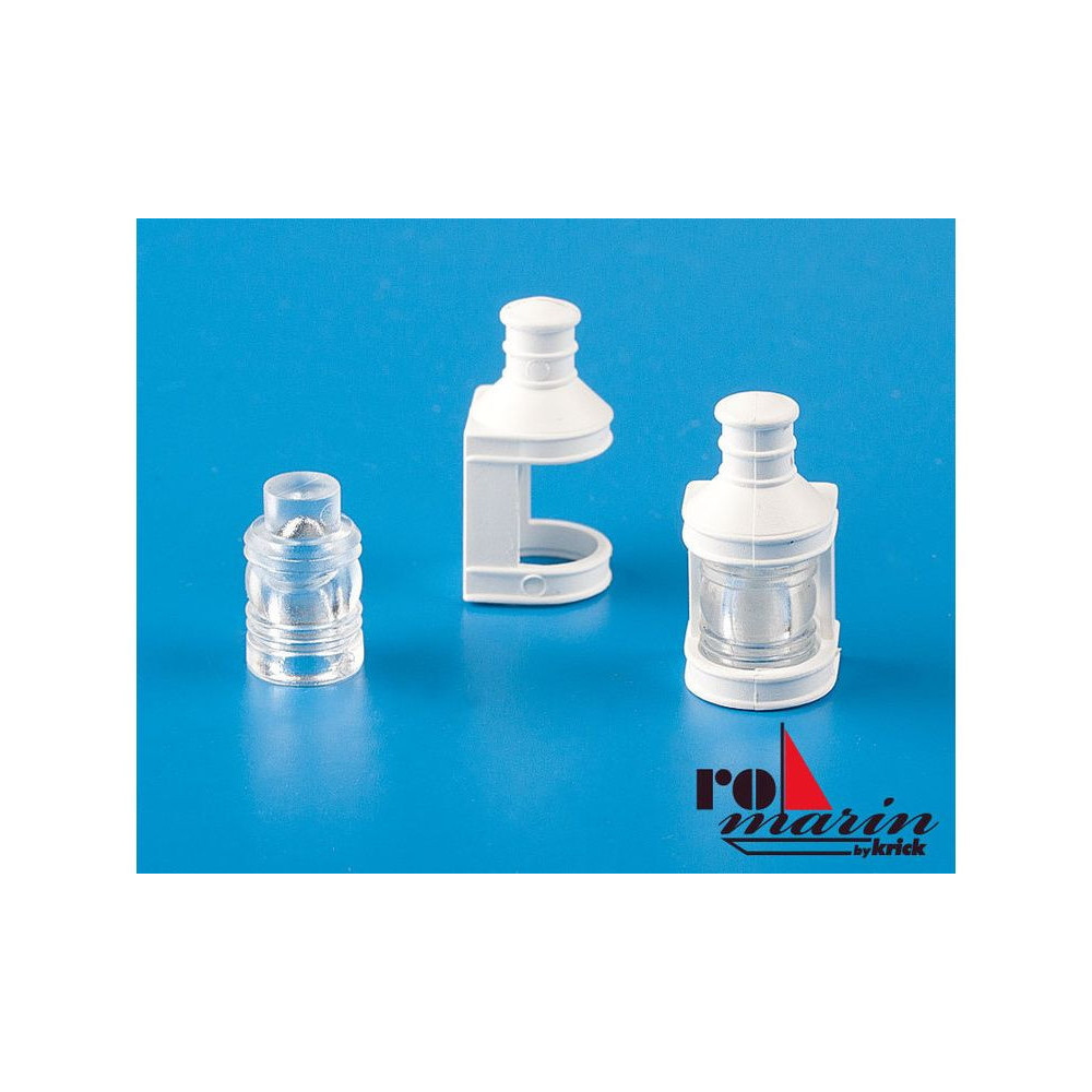 A Romarine univerzális hajó tartozék egy nagyszerű elrendezési tartozék a modellhajójához. Az elülső vagy hátsó árbocpozíciós lámpák egy lámpaházból és egy átlátszó testből állnak. A megvilágításra maximum 3 mm átmérőjű LED-ek alkalmasak. A lámpaház méretei kb. 10 x 10 x 20 mm.