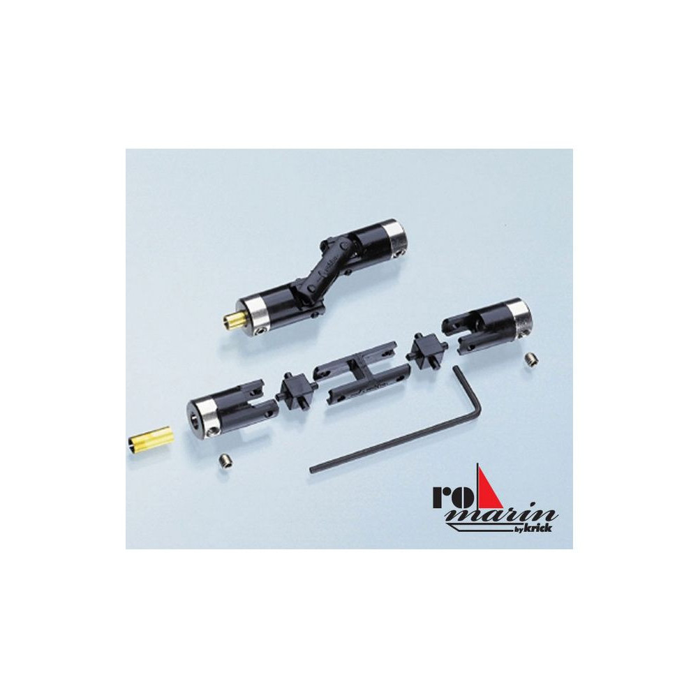 Univerzális Romarine tartozékok az Ön hajómodelljéhez. Kardan 44 3,2/4 mm-es 4 mm-es csónakcsatlakozó. A lyukak 4mm-esek a végeken 3,2mm-es tengelytávolsággal. Teljes hossza 52mm, külső átmérője 10mm.