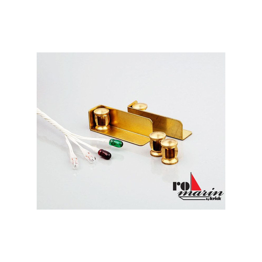 Az univerzális Romarine tartozékokat az építés során hajómakett tartozékként lehet használni. Pozíció világítás sárgaréz 6V komplett. 4x lámpa 7x9,5 mm, 2x sárgaréz foglalat 9x9x30mm, 4x izzó 6 V / 50 mA, kábel hossza 100mm.