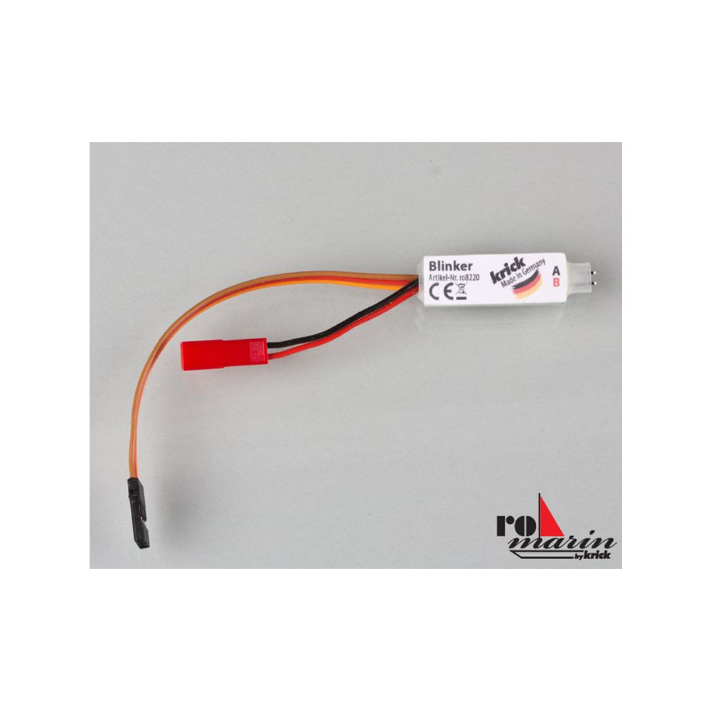 A ROMARIN fénymodul izzók és LED-ek csatlakoztatására alkalmas. A fénymodul villogó funkcióval rendelkezik, amely állítható. A villogás sebessége egy arányos csatornával állítható, és természetesen be- vagy kikapcsolható (beállítható a szervóút). Működési feszültség: 4,8-9 V.