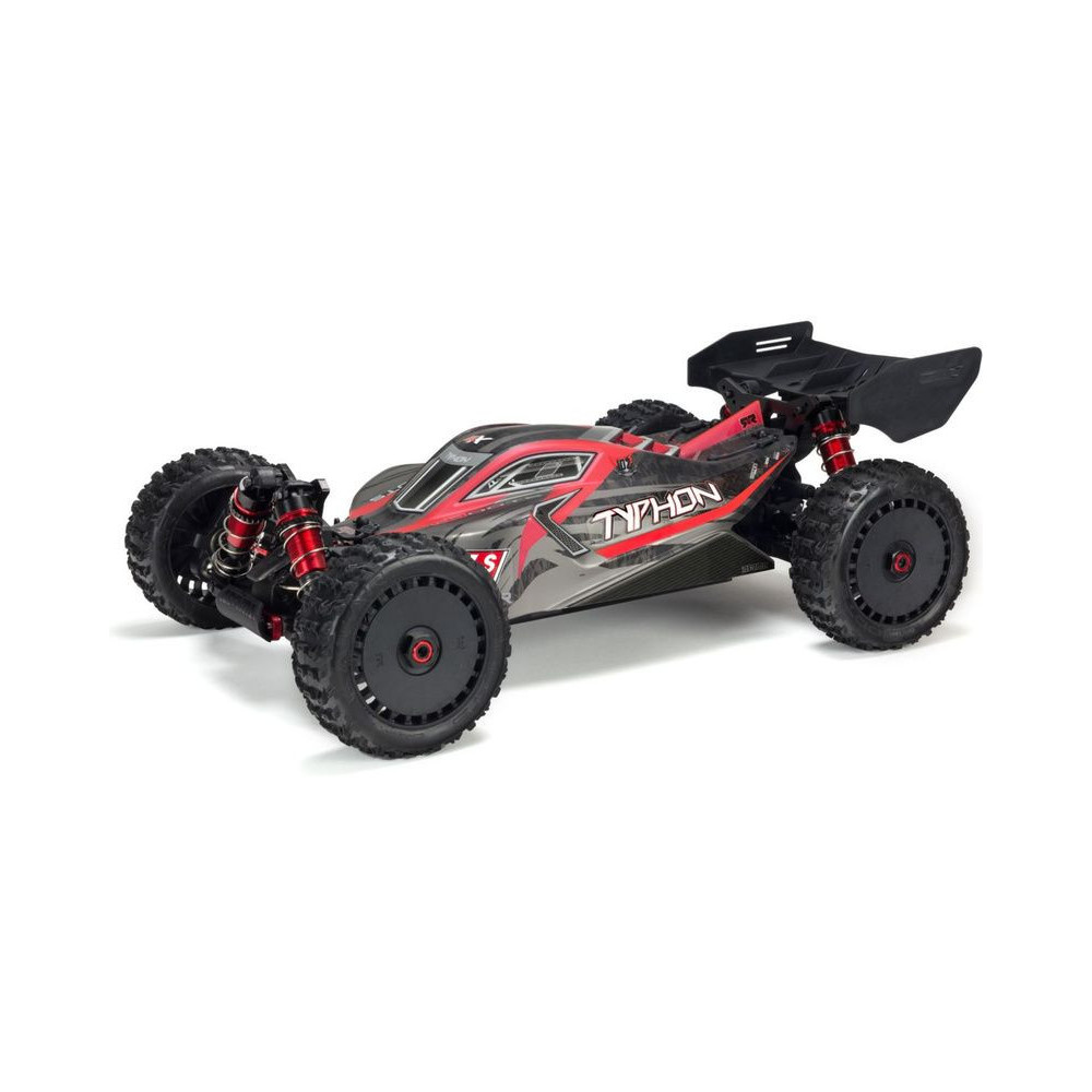 Tartalék alkatrész Arrma Typhon 6S RC modellautóhoz: karosszéria fekete/piros.