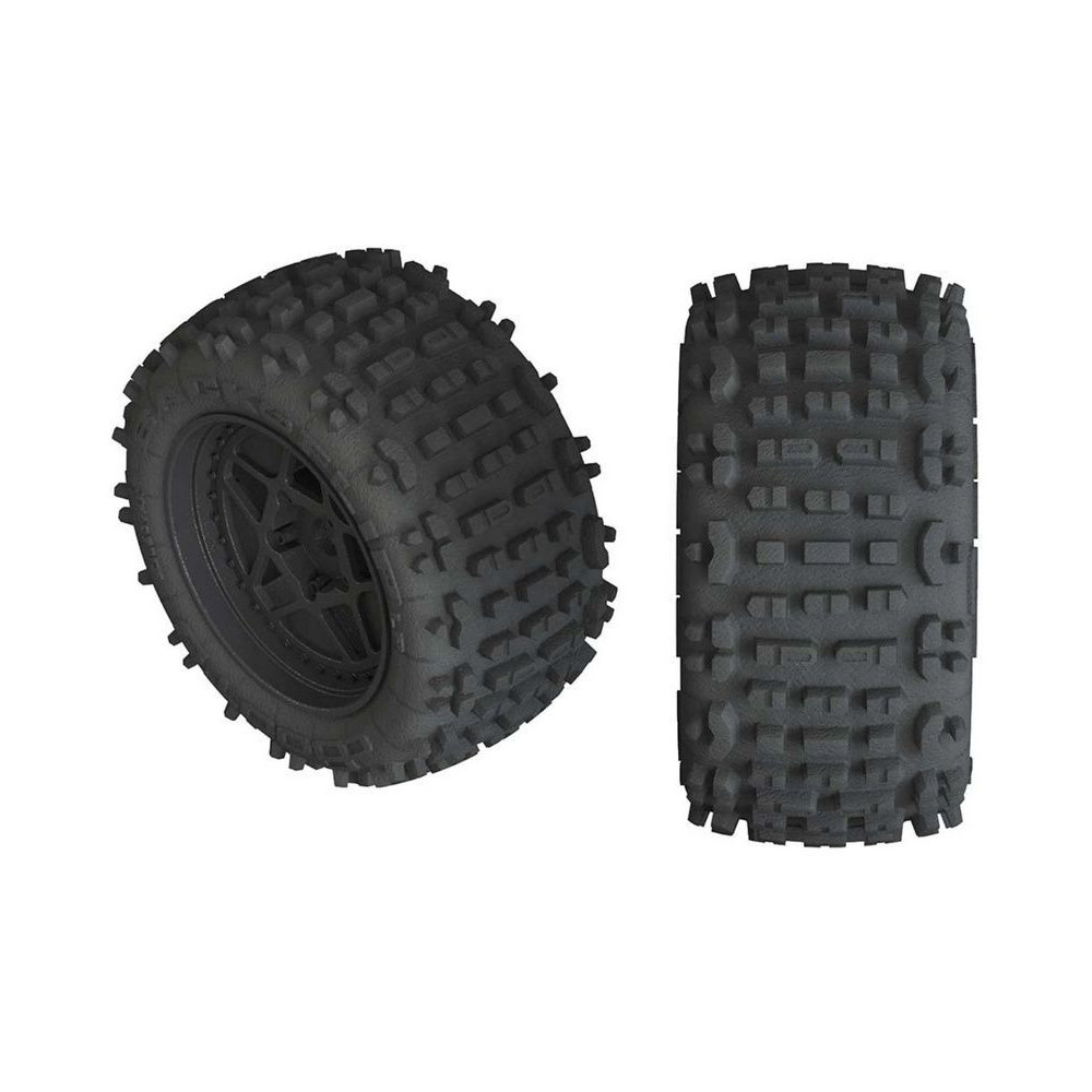 Pótalkatrész RC modellautóhoz Arrma Kraton/Outcast 4S BLX: kerék gumiabroncsokkal Backflip 4S fekete (2 db).