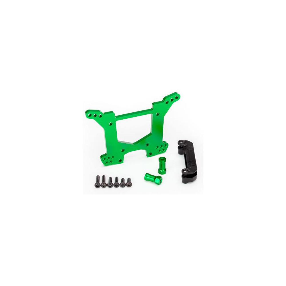Traxxas zöld eloxált hátsó lengéscsillapító torony, nagy szilárdságú 7075-T6 alumíniumból. A karosszériatartóval együtt.