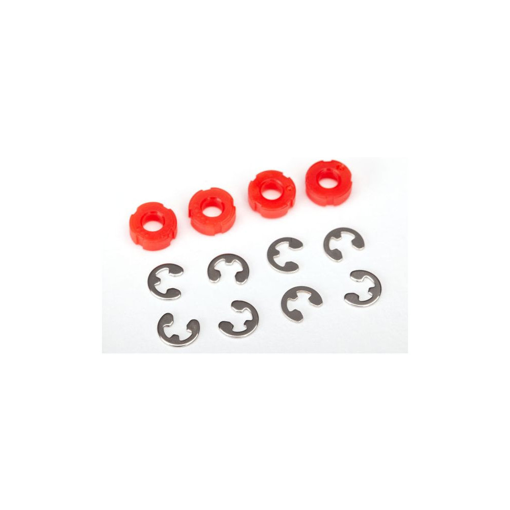 Traxxas dugattyú, csillapító (piros) (4)/ e-clips (8) - dugattyúgyűrűk piros, rögzítőgyűrűk.