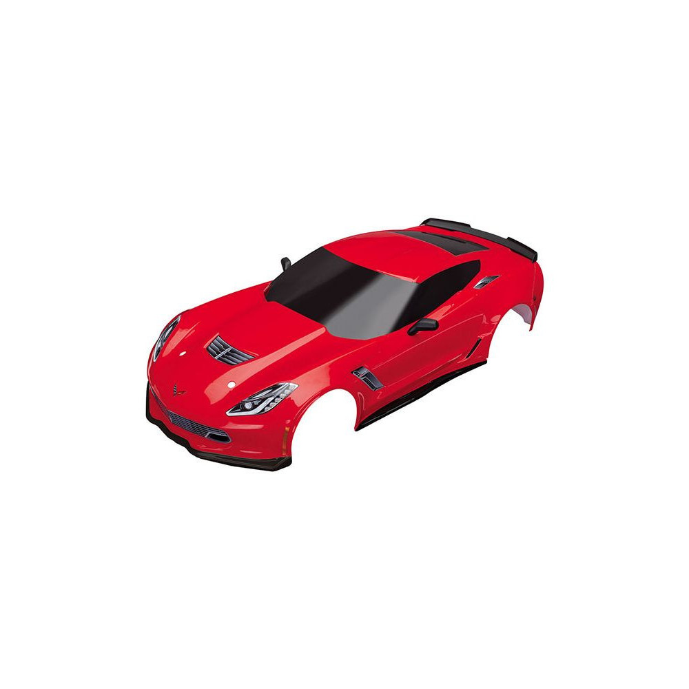 Karosszéria Traxxas Chevrolet Corvette Z06 - piros. Kész festett karosszéria lenyomatokkal tuning Traxxas RC autó modellekhez 4-Tec 2.0 1:10, 4-Tec 2.0 Ford GT 1:10 és 4-Tec 2.0 Ford Mustang GT 1:10 alvázakhoz.