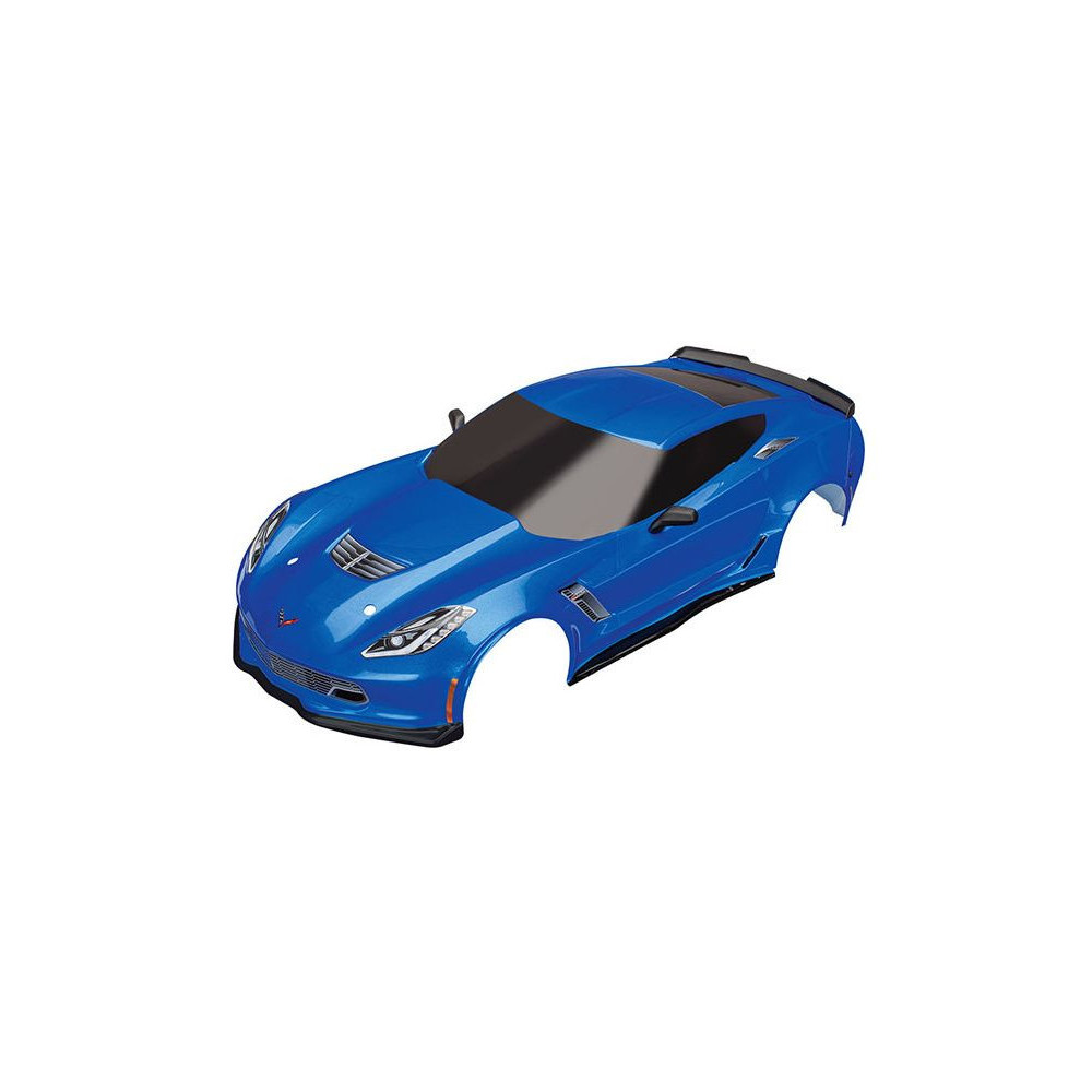 Karosszéria Traxxas Chevrolet Corvette Z06 - kék. Kész festett karosszéria lenyomatokkal tuning Traxxas RC autó modellekhez 4-Tec 2.0 1:10, 4-Tec 2.0 Ford GT 1:10 és 4-Tec 2.0 Ford Mustang GT 1:10 alvázakhoz.