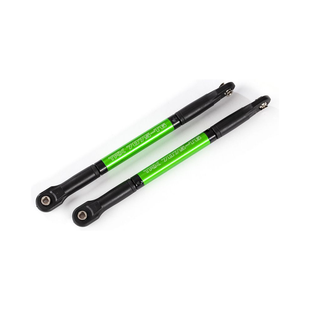 Pótalkatrész a Traxxas E-Revo 1:8 VXL RC modellekhez: HD alumínium összekötő rúd (7075-T6) - zöld eloxált (2 db). Könnyebb és erősebb tuning alkatrész.