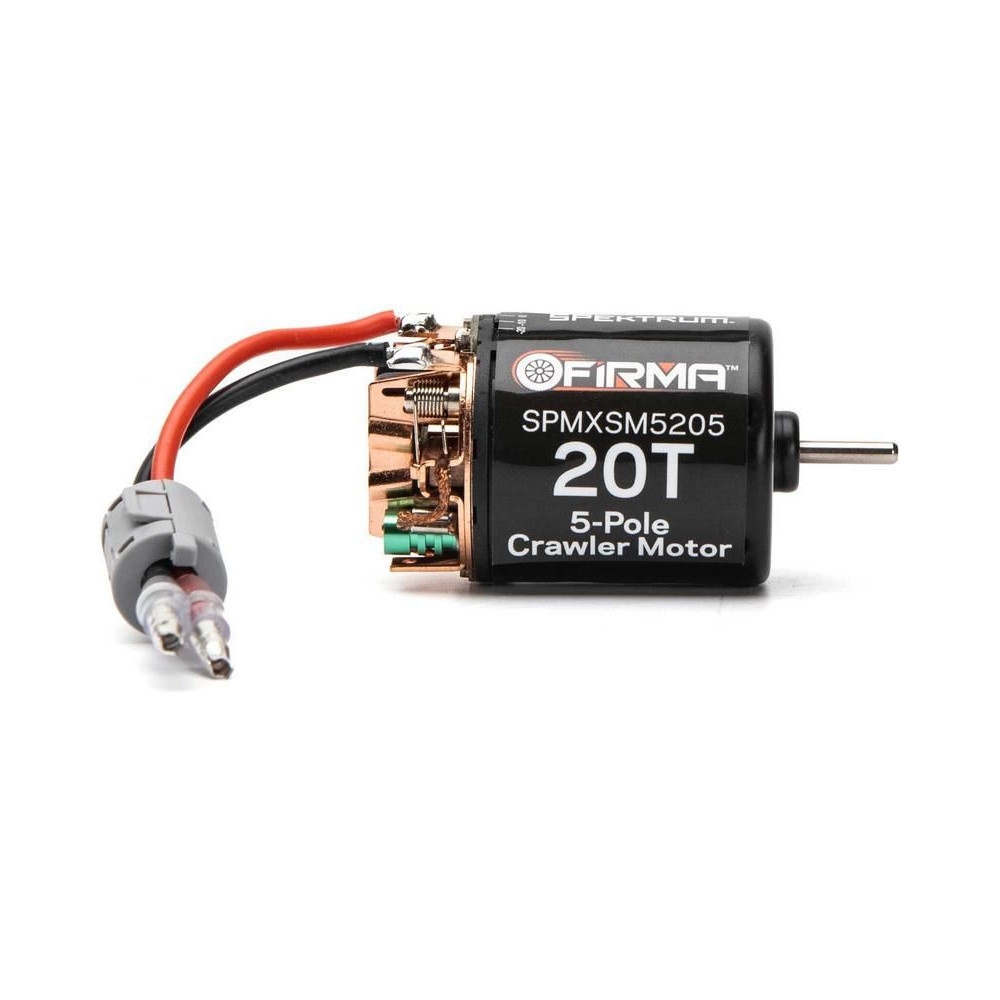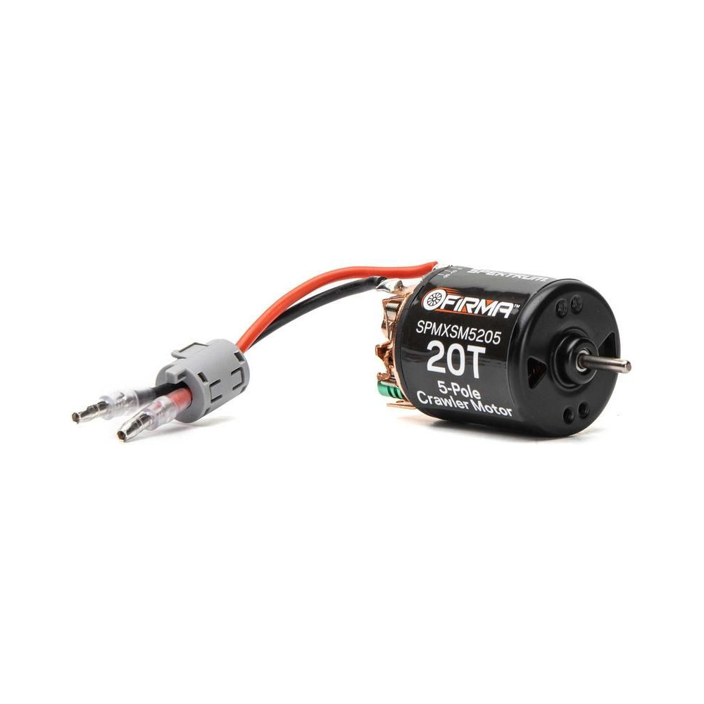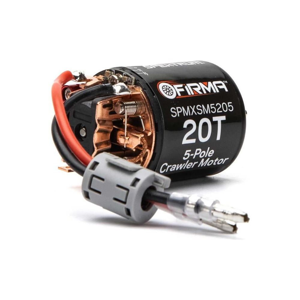 DC motor Spektrum Firma 540 sorozat 20 fordulatos, 5 fogas rotorjának köszönhetően nagy nyomatékú és kis fordulatszámon egyenletes futású, alacsony fordulatszámon is használható RC lánctalpas és expedíciós autók modelljeihez. A motor precíziós kialakítású, tokozott golyóscsapágyakkal és cserélhető kefékkel rendelkezik. A kefék gyárilag öntöttek. Az igényes felhasználók számára lehetőség van a motor időzítési beállításainak megváltoztatására. Javasoljuk, hogy a motort 40A (vagy annál nagyobb) vezérlővel használjuk.