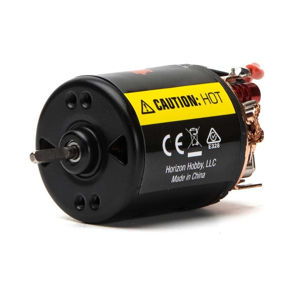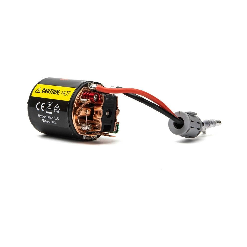 DC motor Spektrum Firma 540 sorozat 20 fordulatos, RC modellautókhoz - lánctalpasok és expedíciók. Golyóscsapágyazott tengely, cserélhető kefék, motor időzítés, 5 fogú rotor a sima működésért. Tápegység 2S LiPo/6-7 cellás NiMH. 3,5 mm-es csatlakozók.
