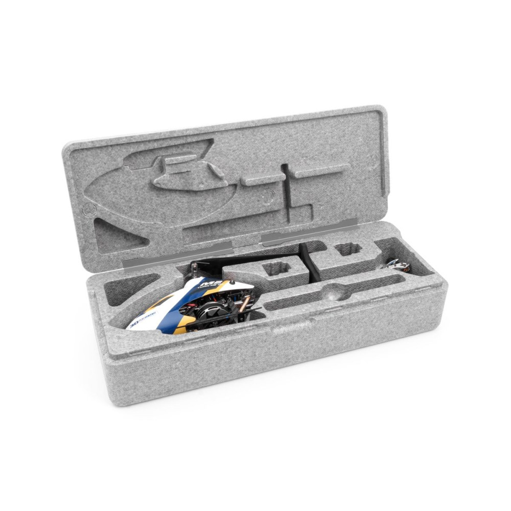 A helikopter teljesen összeszerelve, előre konfigurált vezérlőegységgel érkezik, így Önnek csak annyi a dolga, hogy kicsomagolja a helikoptert, csatlakoztassa S.BUS kompatibilis vevőjét, feltöltse a meghajtó akkumulátort, kövesse a részletes, szemléltető képekkel ellátott utasításokat az adó beállításához, ellenőrizze a helikopter összes funkcióját - és máris felszállhat!