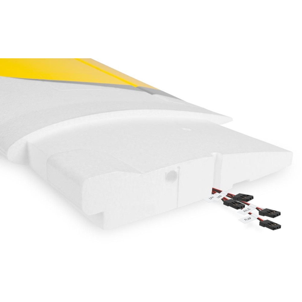 A modell EPO habszivacsból készült szárnya kétrészes, karbon gerendákkal és karbon csőcsatlakozóval. Csavarokkal van rögzítve a helyén. A szárnyakat és a fékszárnyakat két szervó vezérli egymástól függetlenül, rövid egyenes huzalrudakkal, és vannak funkcionális helyzetjelző és leszálló LED lámpák.