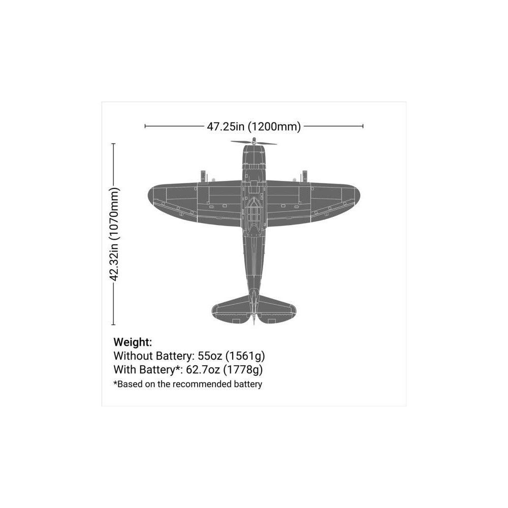 P-47D 1.2m - 850 rpm kefe nélküli motor
