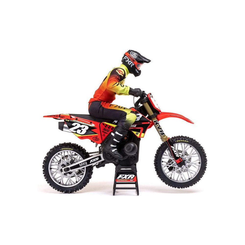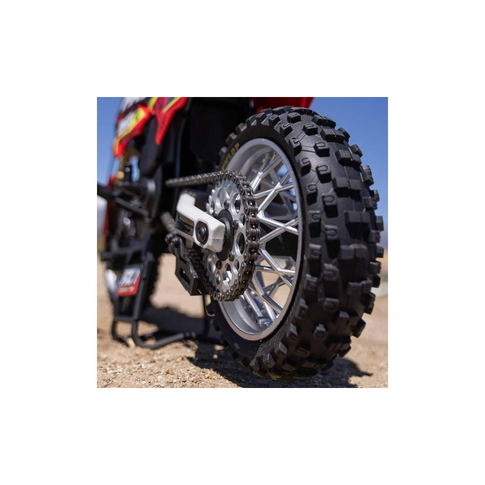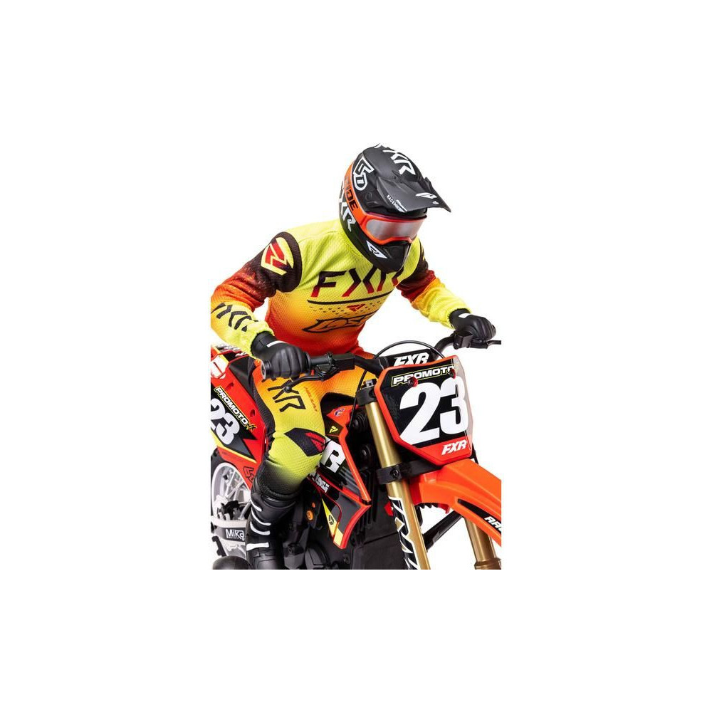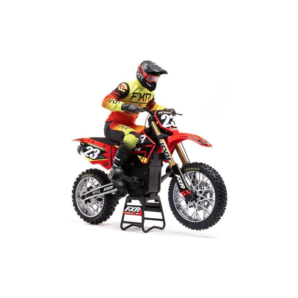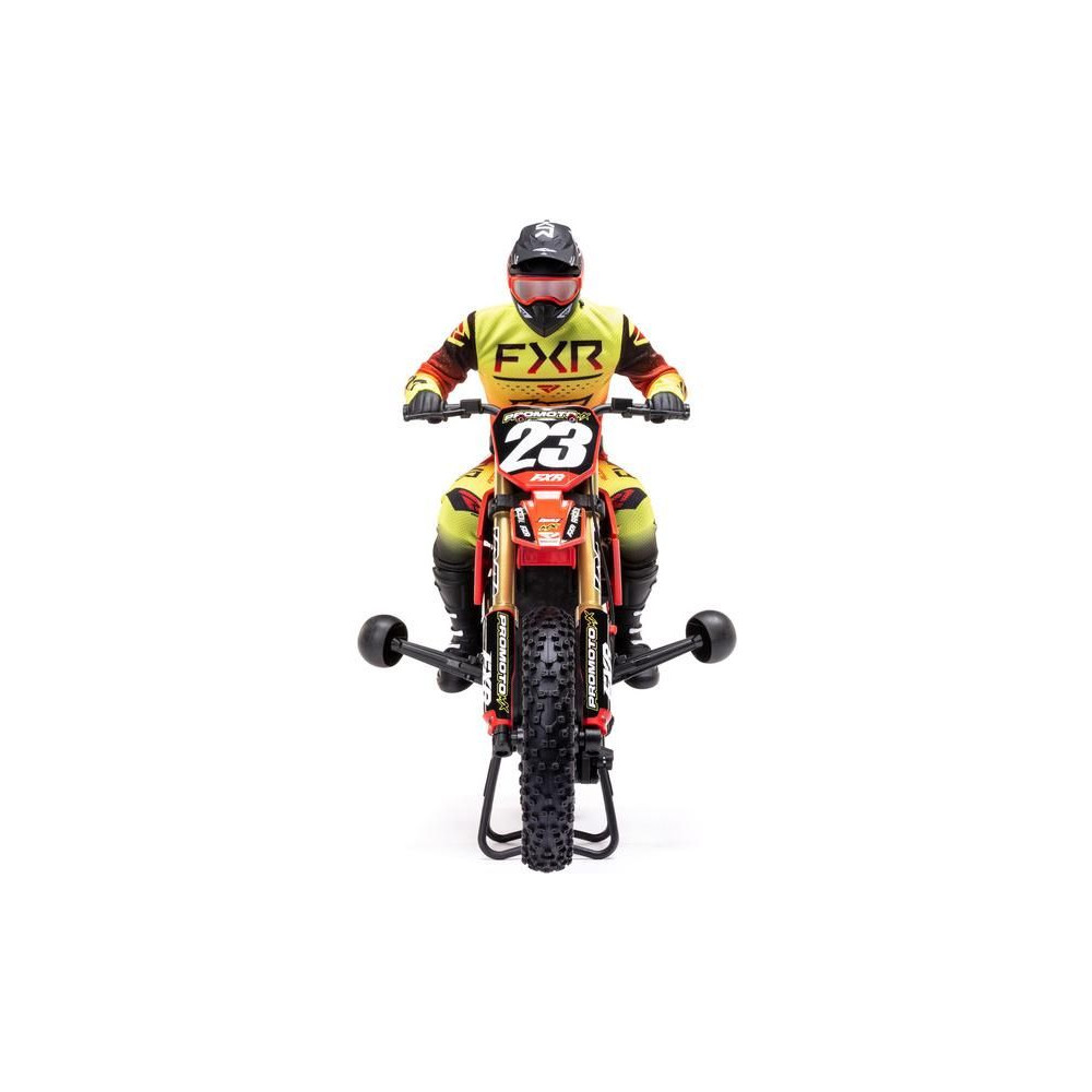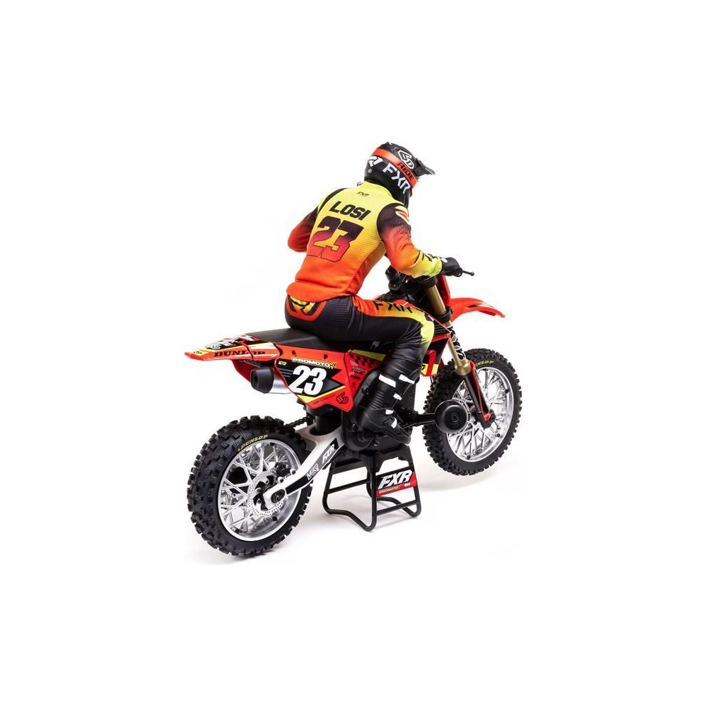 A Losi Promoto-MX cross kerékpár RC modellje 1:4 méretarányban, amely úgy néz ki és úgy működik, mint az igazi. Kiváló stabilizálás, erőteljes AC meghajtás akár 65 km/h sebességet ad a kerékpárnak, funkcionális első fék, lánchajtás, rendkívül valósághű feldolgozás.