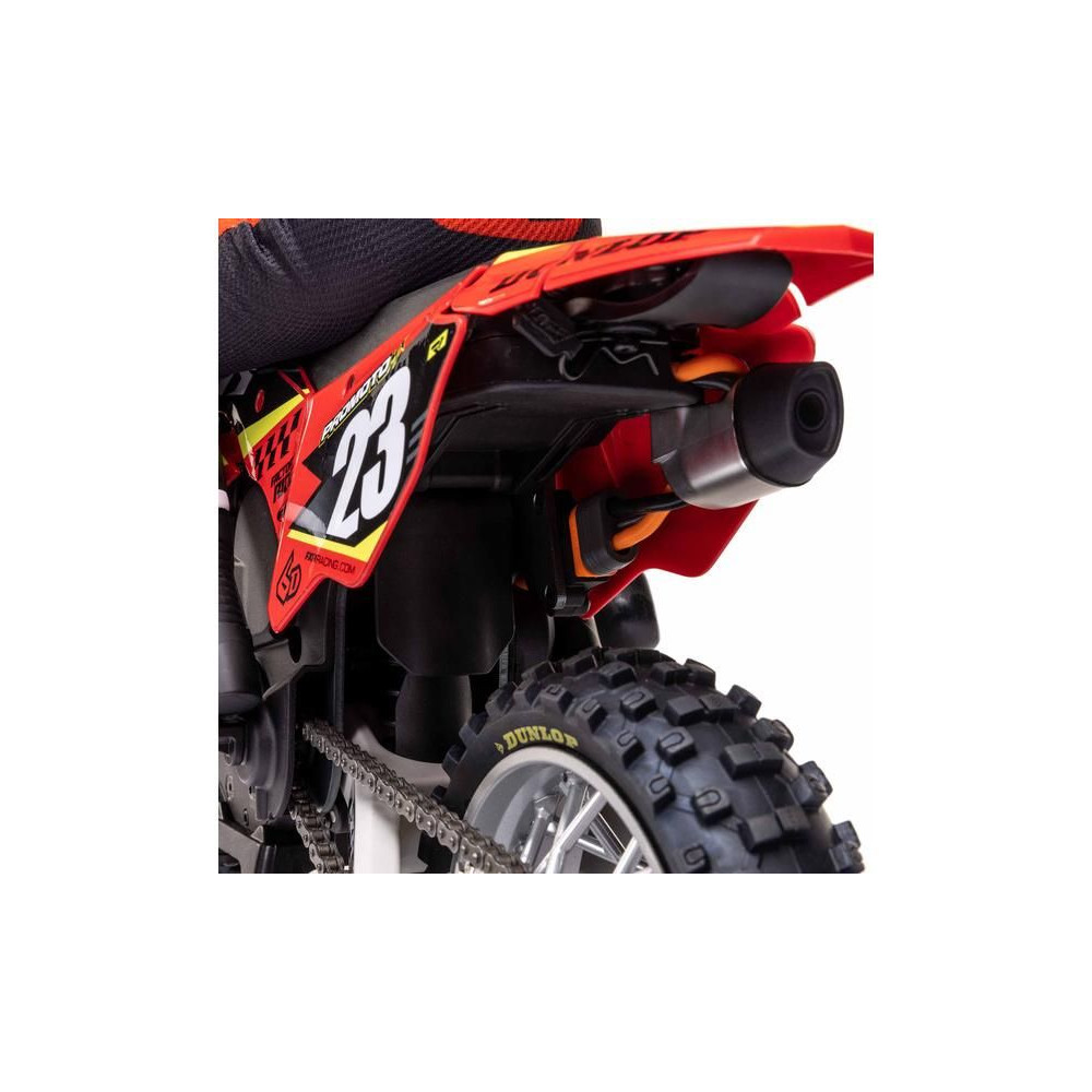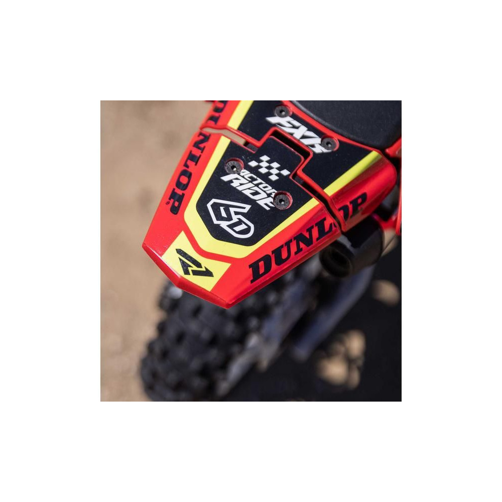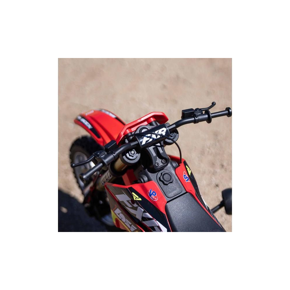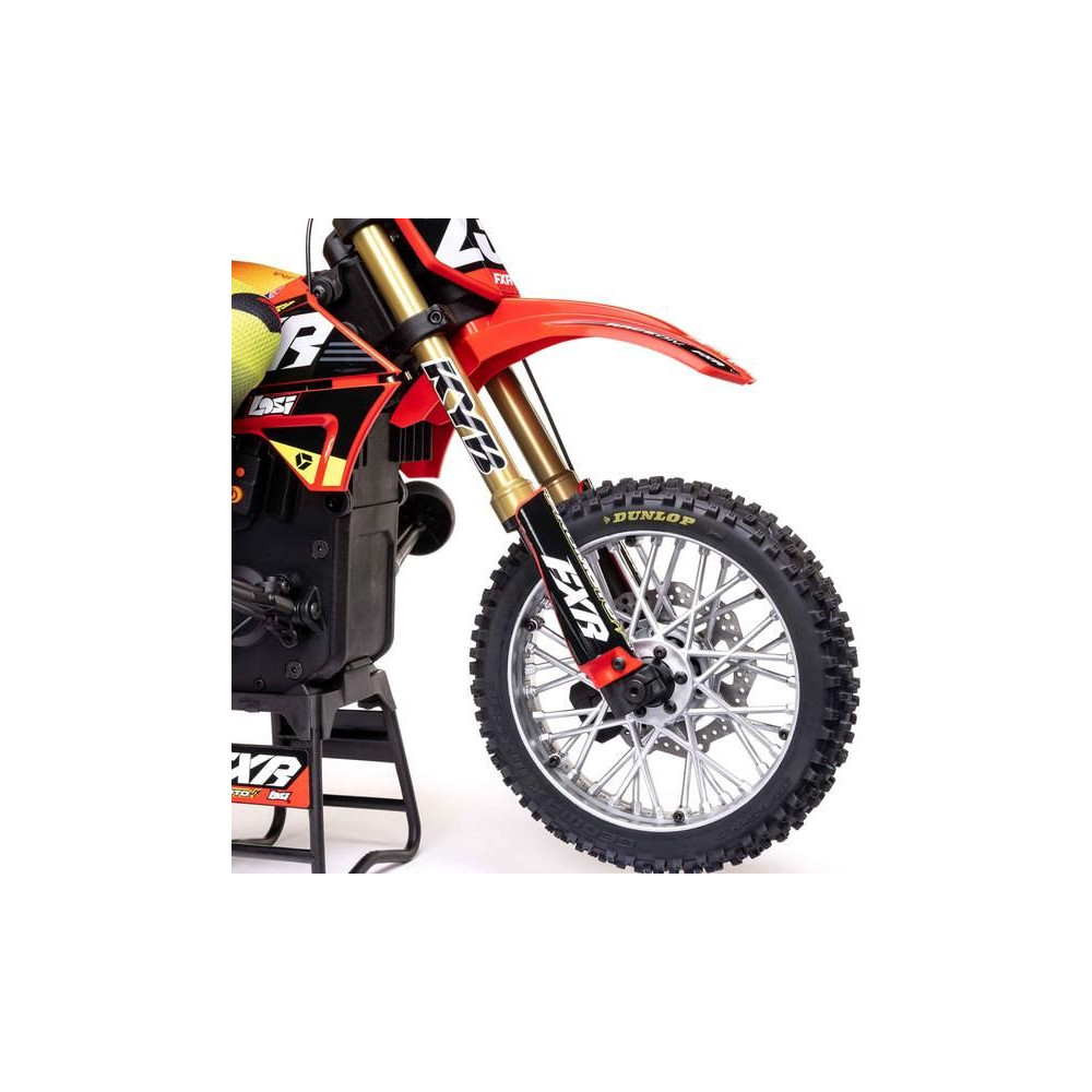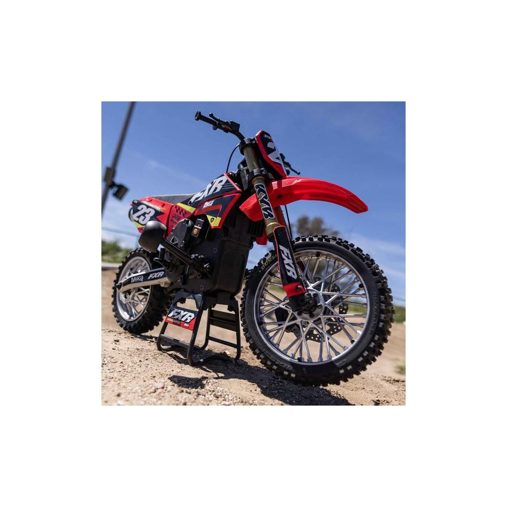 A Losi Promoto-MX cross kerékpár RC modellje 1:4 méretarányban, amely úgy néz ki és úgy működik, mint az igazi. Kiváló stabilizálás, erőteljes AC meghajtás akár 65 km/h sebességet ad a kerékpárnak, funkcionális első fék, lánchajtás, rendkívül valósághű feldolgozás.