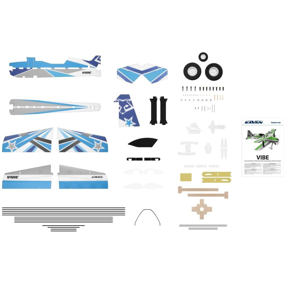 készlet a következőket tartalmazza: nyomtatott törzs, szárny, farokfelületek és futóműfedelek EPP habból vágva, rétegelt lemezből készült motorágy, 3D nyomtatott műanyag alkatrészek, szénszálas megerősítések, karok, villák, rudak és egyéb apró kiegészítők, szénszálas futómű könnyű kerekekkel, részletes, képes építési útmutató.