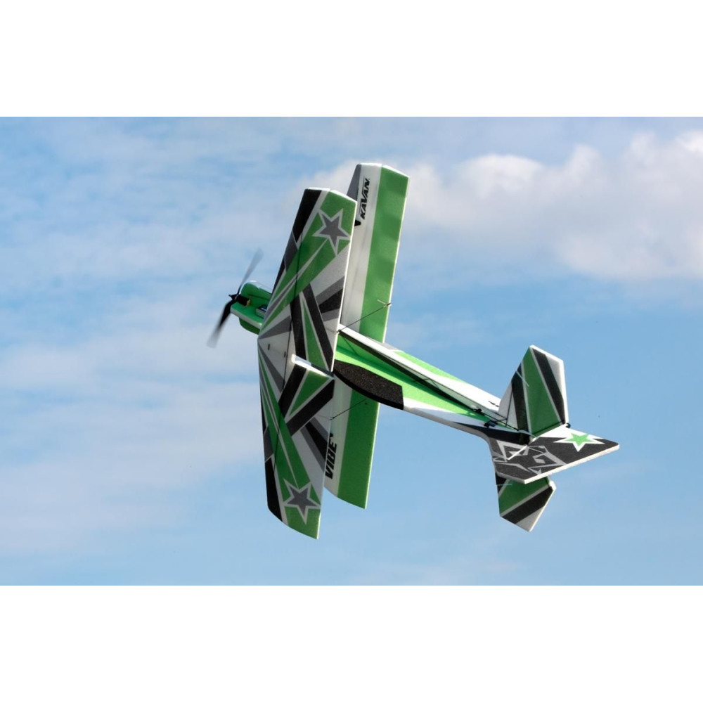 A VIBE egy nagy teljesítményű, kétszintes, parkrepülő kategóriás 3D műrepülő különlegesség, amely hab EPP-ből készült, és 350-500 W-os AC elektromos motorok meghajtására tervezték. Néhány óra egy második ragasztóval a kézben elég ahhoz, hogy elkészüljön ez a modell, amely képes egy klasszikus F3A beállítás fordulatait repülni, valamint a légcsavaron lógni és az összes többi 3D mutatványt végrehajtani! Kevésbé tapasztalt pilóták számára is tervezték; a kisebb kitérésekkel bárki repülheti, aki rendelkezik legalább némi műrepülő tapasztalattal, és képes megbízhatóan repülni az előző modell szaltóját, gurulásával és görgetésével.