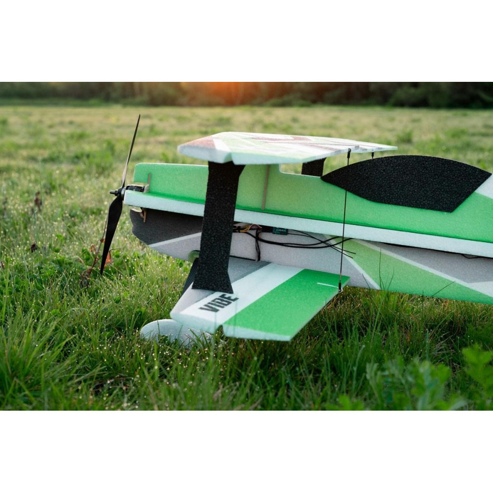 3D műrepülő kétfedelű parkrepülő készlet 1000 mm-es fesztávolsággal, szinte elpusztíthatatlan hab EPP-ből, alaposan megerősített karbon gerendákkal 350-500 W AC elektromos motorokhoz. Szimmetrikus profilú szárnyak, nagy oldalsó felülettel rendelkező törzs a kiváló 3D manőverekhez/lábrepüléshez. Vezérelt szárnyszárnyak, kormánylapát, magassági kormány.