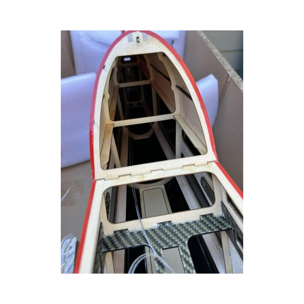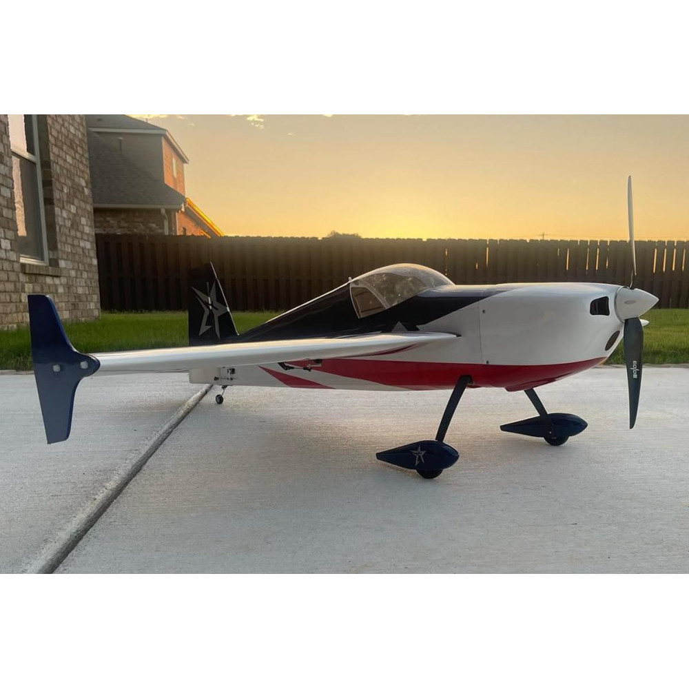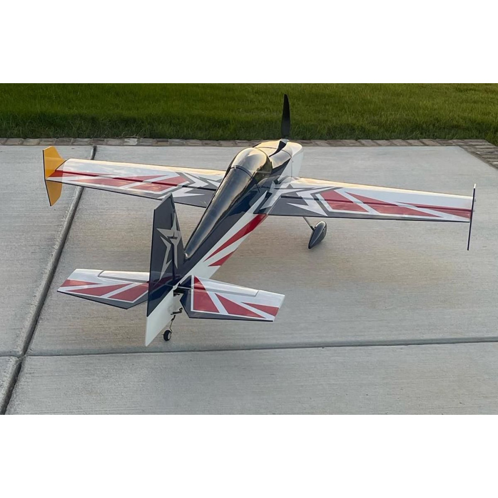 Sportos, félkész műrepülőgép 850-1200 W AC elektromos motorral és 4-6S LiPo-val hajtott, tapasztalt pilótáknak klasszikus precíziós és extrém 3D műrepülésre.A törzs klasszikus konstrukció rétegelt lemezből és balsából lézervágott, Kevlar® és szénszállal megerősített részekből, levehető üvegszálas motorburkolattal és levehető felső törzzsel, kabinos kabinokkal, hogy tökéletesen hozzáférjen a meghajtórendszerhez és az RC felszereléshez. A motor a hátsó szerelvényben egy rétegelt lemez dobozágyra szerelt. a kétrészes, szimmetrikus profilú szárny (a feleket oldalirányban csúsztatják egy karbon csőcsatlakozóra és csavarokkal rögzítik) szintén hagyományos építésű, teljesen balsából készült merev borítással. A nagy felületű szárnyszárnyakat 2 független szervó vezérli. A szárnyvégekre a mellékelt SFG wingleteket lehet felszerelni. A farokfelületek teljesen balsából készültek, a VOP egy darab, a stabilizátor a törzsbe ragasztva. A magassági kormányt és a kormánylapátot a törzs farokrészébe szerelt szervó vezérli egy rövid egyenes botkormánnyal. az egész modell ULTRACOTE vasalható fóliával van bevonva (ez az USA-ban használt védjegye a jól ismert Oracover fóliának). A futómű sarkantyús, karbon főlábakkal, könnyű kerekekkel üvegszálas borítással és a kormányhoz illesztett karbon konzollal ellátott drótsarkantyúval. a meghajtáshoz egy 850-1200 W-os váltóáramú villanymotorra lesz szükség - pl. KAVAN PRO 3548-750 13x6,5" légcsavarral és 60-80 A sebességszabályozóval, amely 4S LiPo akkumulátorral 2600-2800 mAh, legalább 40C terhelhetőséggel vagy KAVAN PRO 3548-500 13x6,5" légcsavarral és 50-70 A sebességszabályozóval, amely 6S LiPo akkumulátorral 1800-2200 mAh, legalább 40C terhelhetőséggel működik.Legalább egy négycsatornás számítógépes RC készlet alkalmas lesz a modell vezérlésére - a kettős és exponenciális kitérések megfelelő méretű programozásának képessége elengedhetetlen a műrepüléshez - mind a klasszikus precíziós, mind az extrém 3D-s repüléshez.Akészlet tartalmazza: vasalható fóliával bevont törzs, szárny- és farokfelület, fújt üvegszálas motorborítás, teljes tartozékkészlet, karbon futómű, sarkantyú, könnyűszerkezetes kerekek és használati utasítás.