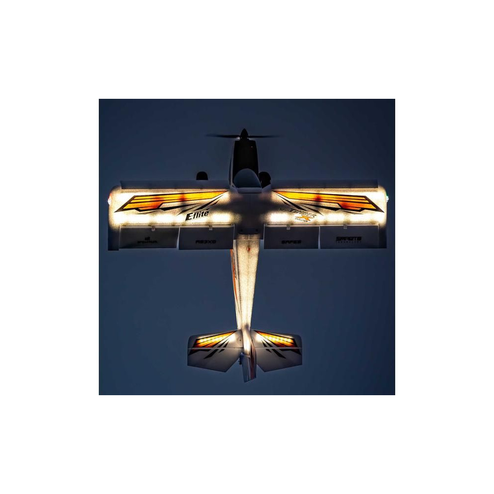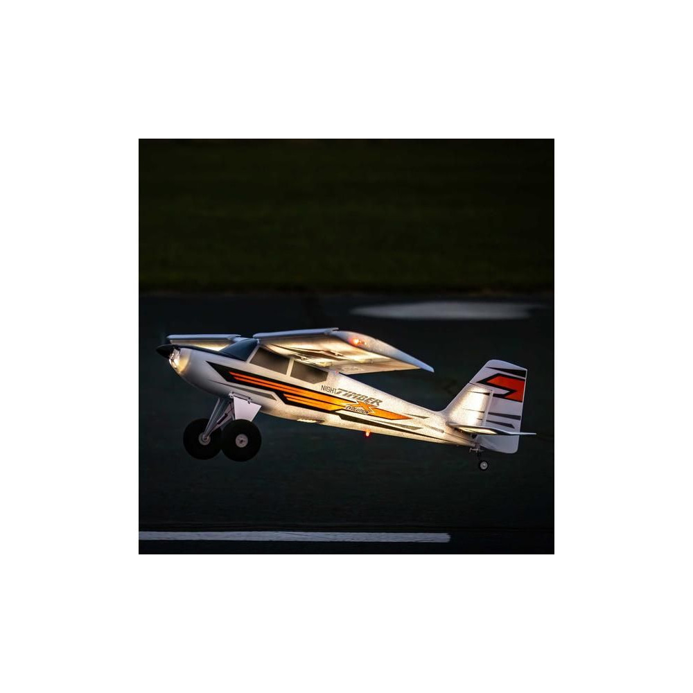 A modell összeszereléséhez nincs szükség ragasztóra, így a Night Timber X Evolution repülésre kész lehet, mielőtt még lenne időd feltölteni az akkumulátorokat. A két részből álló szárny, amelybe integrálták a szervomotorok és a LED-világítás csatlakozóit, megkönnyíti a repülőtérre való szállítást és a tárolást is.