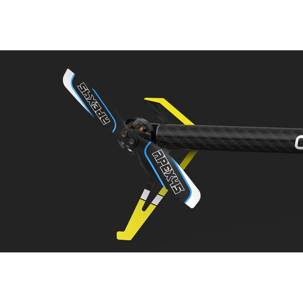 A robusztus, 4 mm-es főtengely golyóscsapágyakban kapott helyet. A ciklikus lemez dúralumíniumból készült, akárcsak a lapáttartós rotorfej. A 3G flybarless rendszernek és az elektronikus CCPM-nek köszönhetően az újonnan optimalizált geometriájú és a ciklikus és kollektív vezérlés megnövelt elmozdulási tartományával rendelkező rotorfej nagyon egyszerű. A farokrotorlapátok a "nagy" RC helikopterek farokrotorainak csodálatos miniatűrjei - mindenféle golyóscsapággyal és lengéscsillapítóval! Az új APEX 190 rotorlapátok nagyobb hatásfokot és alacsonyabb zajszintet kínálnak; ugyanakkor kellő merevséggel rendelkeznek ahhoz, hogy a kormányzási eltérések nagyobb tartományát kezeljék.
