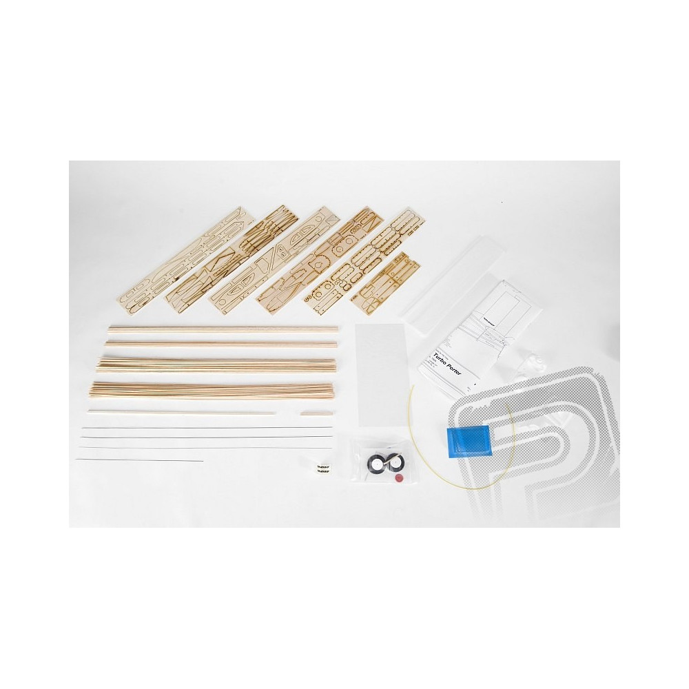 Akészlet tartalmazza: balsa lézervágott alkatrészek, balsa gerendák, vákuum-öntött alkatrészek (motorborítás...), átlátszó műanyag lap a kabin "üvegezéséhez", acél zsinór a futóműhöz és egyéb apró alkatrészekhez, könnyű habszivacs kerekek, színes bevonópapír, matrica lap, építési terv.