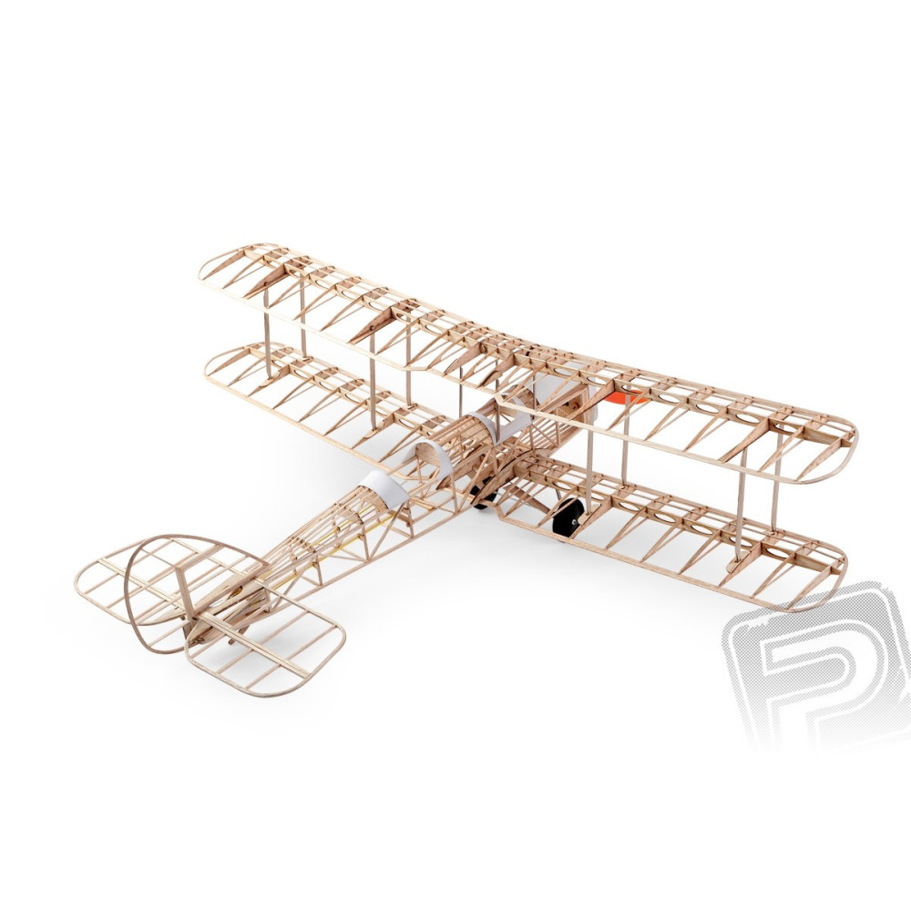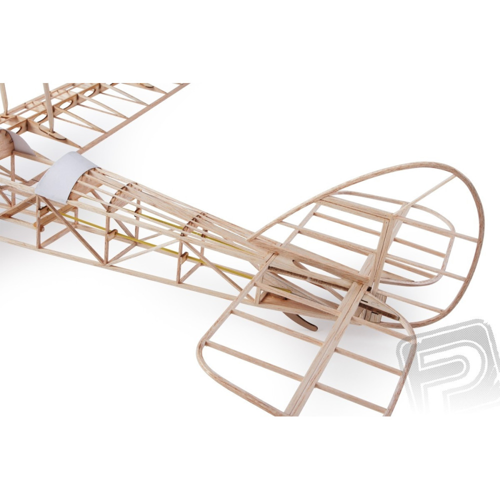 elektromos motorral hajtott brit könnyűbombázó kétfedelű repülőgép RC-készlete. A modell egyszerű, klasszikus, teljesen balsából készült, lézervágott fa alkatrészekkel, vákuumformázott műanyag makettekkel, fröccsöntött műanyag alkatrészekkel és fém alkatrészekkel. A törzs hagyományos miniszabályos technológiával épül balsa gerendákból összeragasztott oldalfalakból, amelyeket fél- és kereszttartókkal köt össze, hogy egy rácsos vázat alkosson. Az így kapott formákat néhány további merevítőgerenda beragasztásával kapjuk. A szárnyak hagyományos építésűek gerendákból és bordákból, a farokfelületek balsacsíkokból és lézervágott alkatrészekből. Egy kisebb "csípés" a farokfelületek és a szárnyvégek ívének nedves laminált balsacsíkokból történő elkészítése. Így meglepően erős és nagyon könnyű alkatrészeket kapunk - méghozzá karbon felhasználása nélkül! A szükséges sablonok rajzai ismét megtalálhatók az útmutatóban. Az egész modellt bevonhatjuk a készletben mellékelt papírral vagy egy megfelelő könnyű, alacsony zsugorodású vasalható fóliával, mint például az Airspan vagy a Litespan.