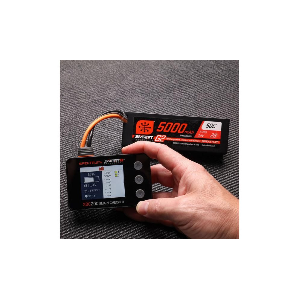 A Spektrum XBC200 Smart hasznos segítő az akkumulátorok ellenőrzésében és a cellák állapotának meghatározásában. Méri az 1-8 cellás Lipol, LiHV, LiFe, LiIon akkumulátorok és az 1-10 cellás NiMH, NiCd akkumulátorok feszültségét. Spektrum Smart akkumulátorok csatlakoztatásakor az XBC200 Smart eszköz a cellák állapotára vonatkozó információk mellett előzményeket is kínál, nevezetesen a befejezett ciklusok számát, valamint a nem szabványos értékek, például a cellák túlzott kisütése vagy túltöltése rögzítését. Minden a színes LCD kijelzőn jelenik meg. A három gombbal ellátott intuitív kezelőfelület lehetővé teszi a könnyű mozgást a MENÜben.