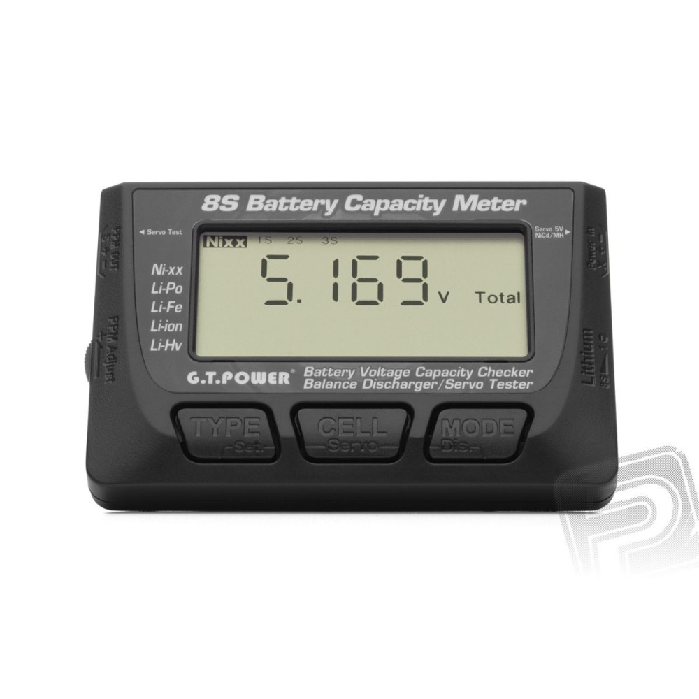 A LiPo akkumulátor 1-8S teszter egy többfunkciós mérőeszköz a legtöbb fő modellező akkumulátor típusai állapotának tesztelésére: Li-Po, Li-ion, LiFe, LiHV, NiCd és NiMH. Ezenkívül lehetővé teszi a balanszeres akkukisütését és lítium-készletek autonóm kiegyensúlyozását, hogy az egyes cellák feszültségét azonos szintre kiegyenlítsék. Szervó teszter üzemmódban a szervók és az elektronikus fordulatszám-szabályzók tesztelésére használható.