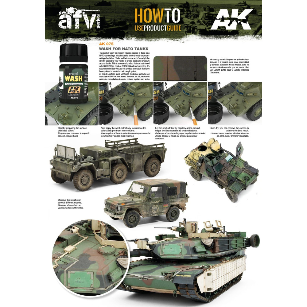 Emailový výrobok. Perfektný tmavý wash pre moderné vozidlá natreté tmavou trojfarebnou kamuflážou, najmä vozidlá NATO alebo tmavé kamufláže. Perfektný tmavý wash pre moderné vozidlá natreté tmavou trojfarebnou kamuflážou, najmä vozidlá NATO alebo tmavé kamufláže. Základnou technikou používanou na zvetranie akéhokoľvek typu modelu je wash, klasická technika, ktorá je dodnes jednou z najpoužívanejších techník v modelárstve. Wash nanášajte po pretrepaní fľaše veľkým štetcom, aby ste vybrali detaily a vytvorili tiene.