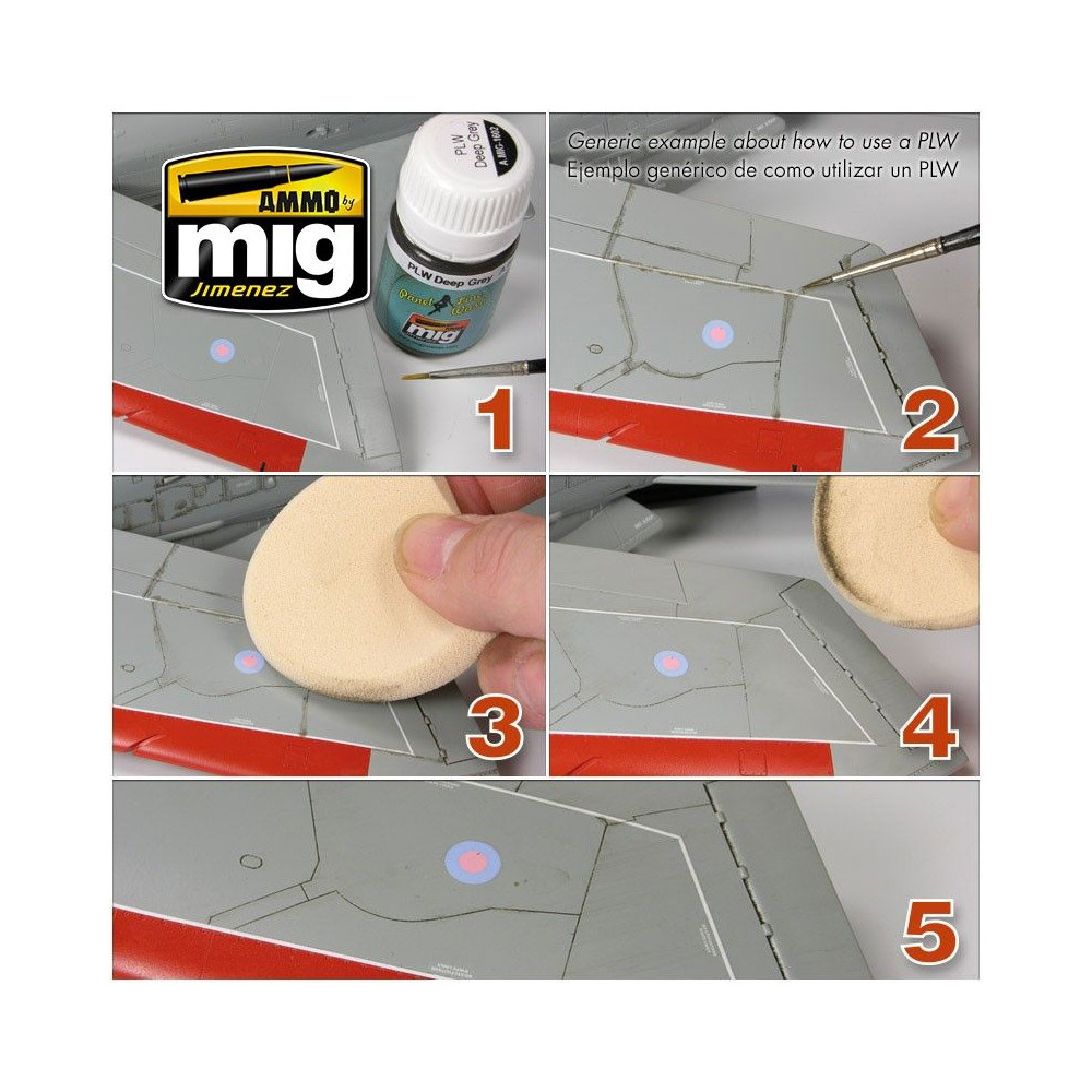 Wash na panely vo farbe prachu, ideálny pre vozidlá a lietadlá vo veľmi tmavozelenej farbe, ako boli japonské lietadlá z druhej svetovej vojny. Náš rad Panel Line Wash je špeciálne navrhnutý na vytváranie jemných vymývaných línií panelov v lietadlách a je ideálny aj pre iné vozidlá, pri ktorých chceme dosiahnuť jemné efekty, ako sú predmety science fiction, lode a vlaky. Nanášajte na detaily a prebytok odstráňte čistým štetcom navlhčeným v riedidle na emaily A.MIG-2018.