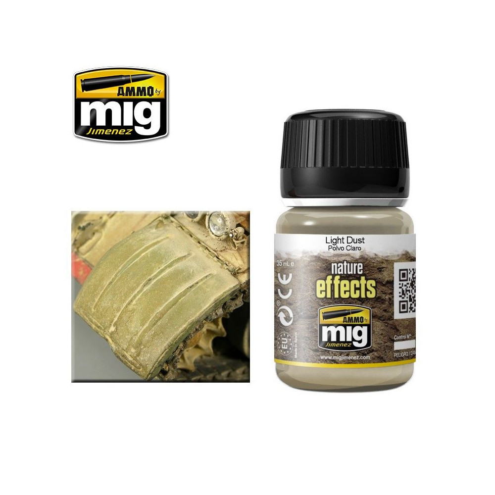 Svetlý smalt, ktorý možno použiť na vytvorenie prašných efektov na povrchu. Nanášajte štetcom alebo airbrushom a potom rozotrite čistým štetcom navlhčeným A.MIG-2018 riedidlom.