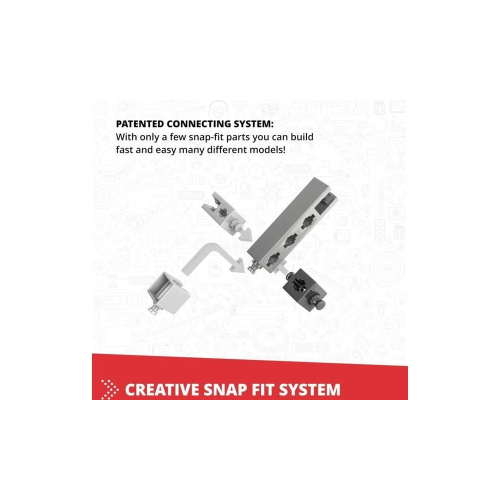 - Innovatív kialakítás: a szabadalmaztatott pattintható csatlakoztathatóság és a többirányú forgócsapok lehetővé teszik, hogy különböző szögekből, akár 6 oldalról egyszerre építkezzünk.
