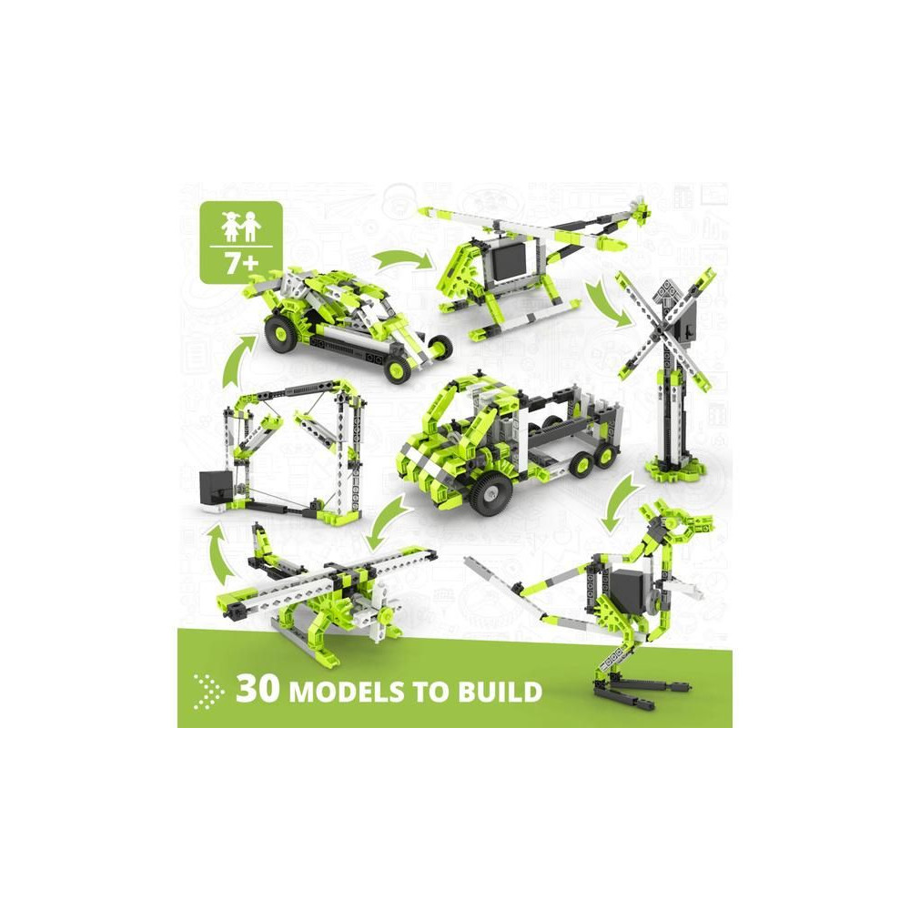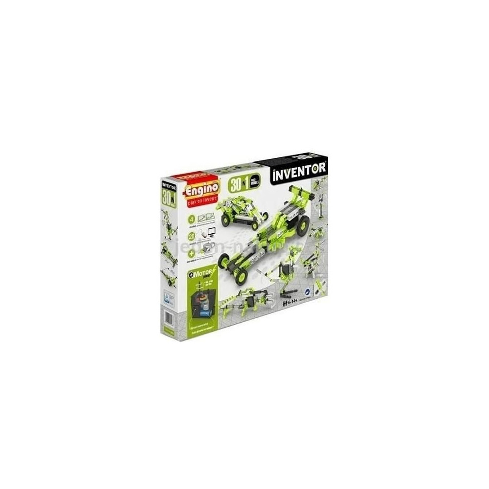 Az Engino Inventor 30 modell egy készlet, amely több modell építésének lehetőségével rendelkezik. Tartalmaz egy elektromos motort, hogy a modellek mozgásba lendüljenek. Lehetőség van csodálatos járművek építésére, mint például buggies a zord utakra, tricikli, robogó... 6 éves kortól.