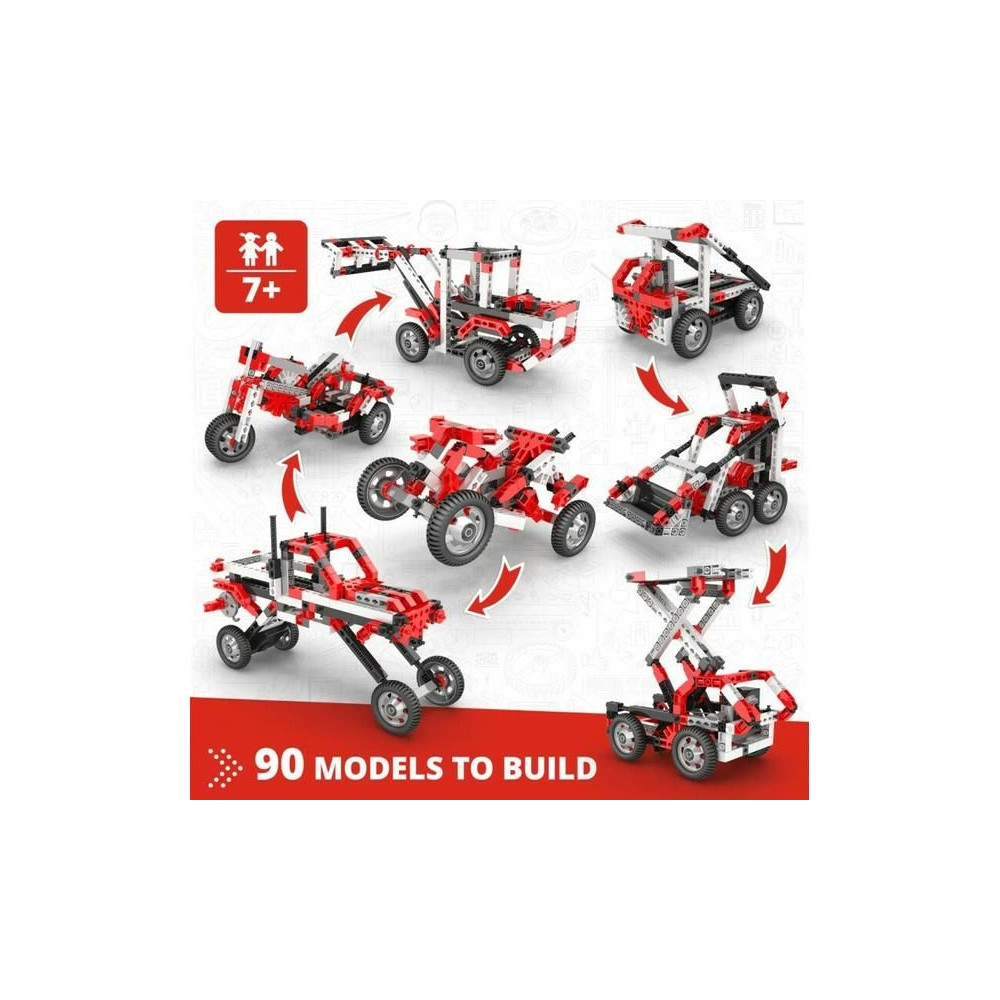 Az Engino Inventor 90 modell egy készlet, amelyből több modell is építhető. Tartalmaz egy elektromos motort, hogy a modellek mozgásba lendüljenek. Nagyszerű modellkészlet kezdőknek, hogy felfedezzék és érdeklődjenek a STEM iránt a kreatív építőkockákon keresztül. A csomagban található alkatrészek száma: 218. 7 éves kortól.