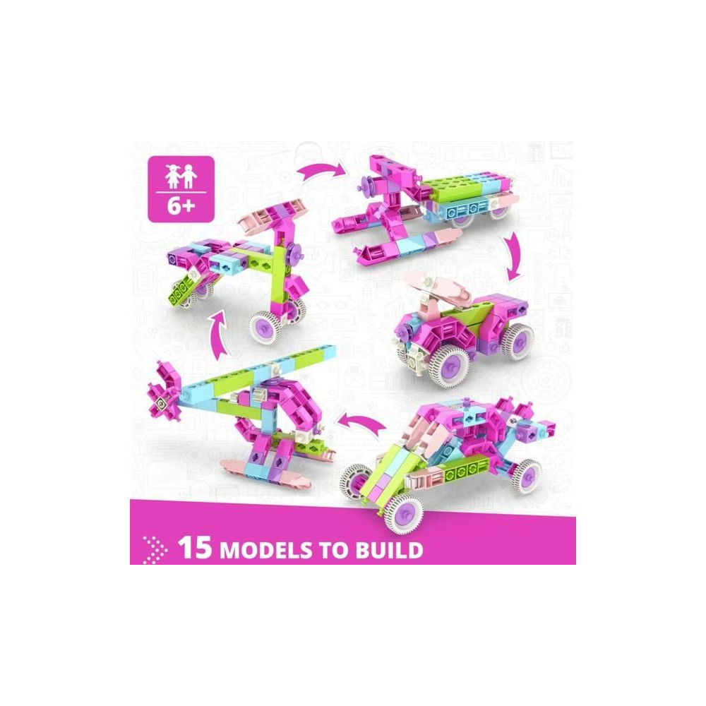 A lányoknak tervezett Engino Creative Builder Designer 15 modellkészlet arra inspirálja őket, hogy kreatívan játsszanak, és szórakoztató módon fedezzék fel a tudomány, a technológia és a mérnöki tudományok csodálatos világát. Építs 15 egyedi modellt az útmutató segítségével. A csomagban 74 alkatrész található. 74 darab.
