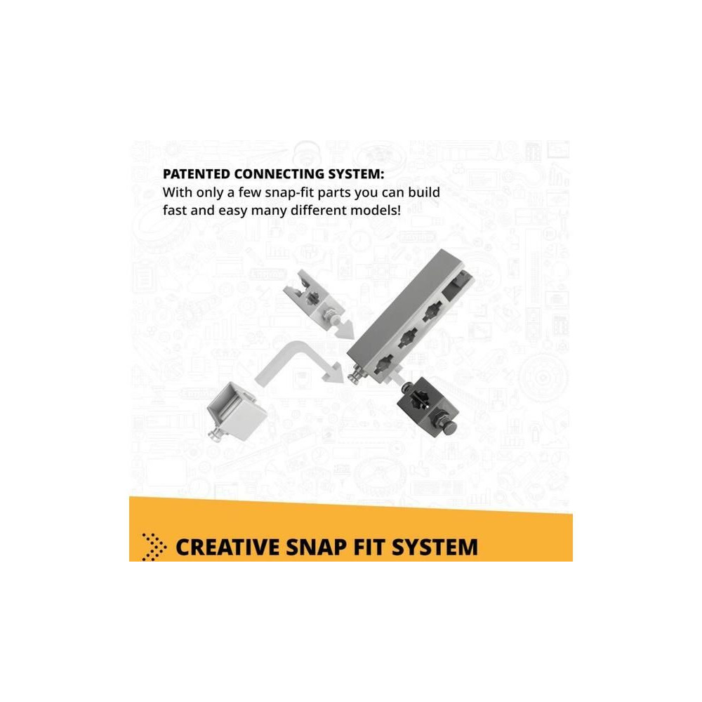 - Innovatív kialakítás: a szabadalmaztatott pattintható csatlakoztathatóság és a többirányú forgócsapok lehetővé teszik, hogy különböző szögekből, akár 6 oldalról egyszerre építkezzünk.