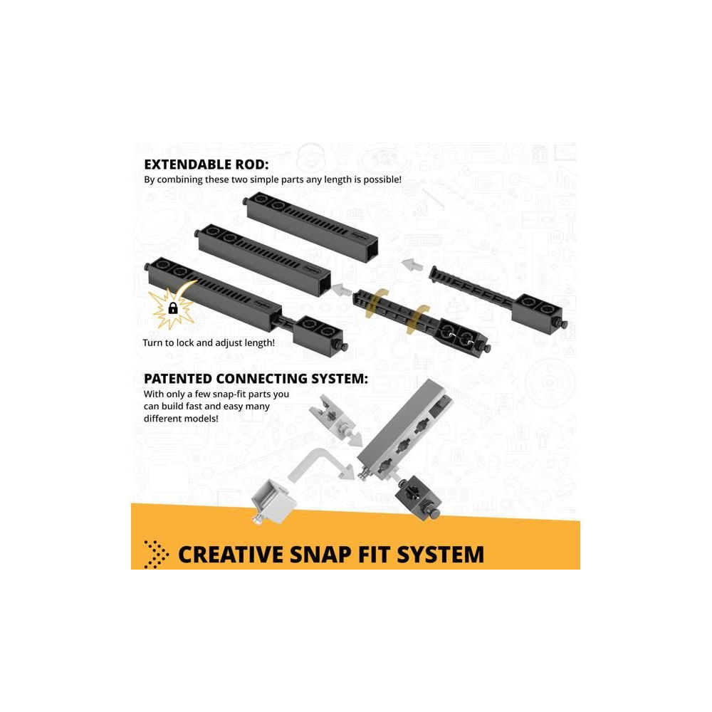 - Hosszabbító rudak: A hosszabbító rudak használata lehetővé teszi, hogy 2D-s szerkezeteket 3D-s tervekké alakítson át, és fejlessze a térbeli gondolkodást.