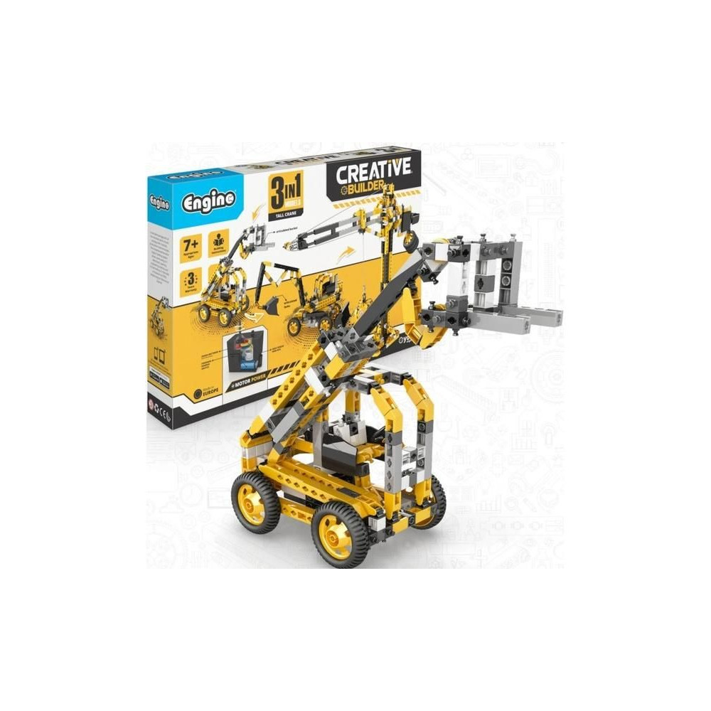 Az Engino Creative Builder 3 az 1-ben targoncás rakodó egy olyan készlet, amely fejleszti a gyermekek kreativitását. A fiatal építőgép-építők megépíthetnek egy bonyolult targoncát, kotrógépet vagy darut, és a mellékelt elektromos motorral mozgathatják a modelleket. A csomagban található alkatrészek száma: 316. 7 éves kortól.