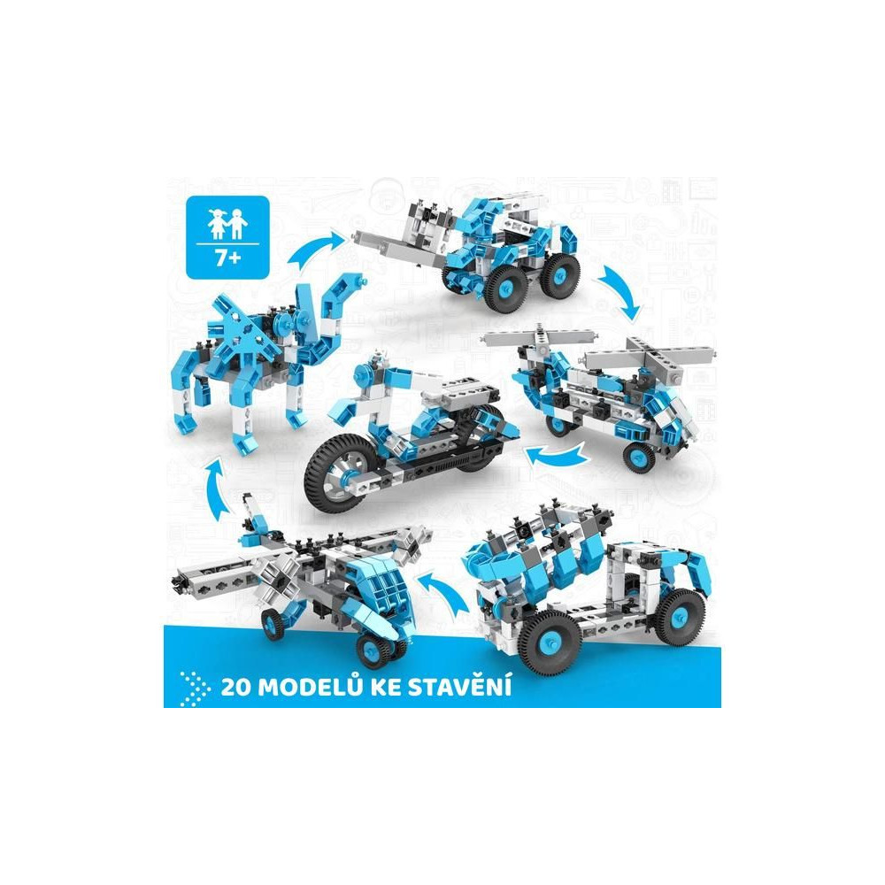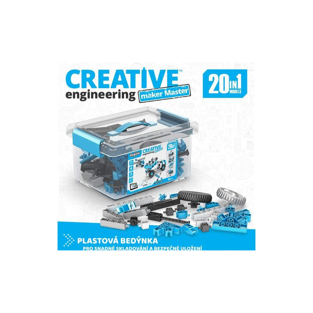 Az Engino Creative Engineering 20 Master egy készlet 7 éves korú gyermekek számára, amely 144 alkatrészt tartalmaz, és 20 csodálatos játékot építhetsz belőle. A modellek egy része a nyomtatott kézikönyvben, a többi online és az alkalmazásban érhető el. Fejleszd kreatív gondolkodásodat az Engino segítségével.