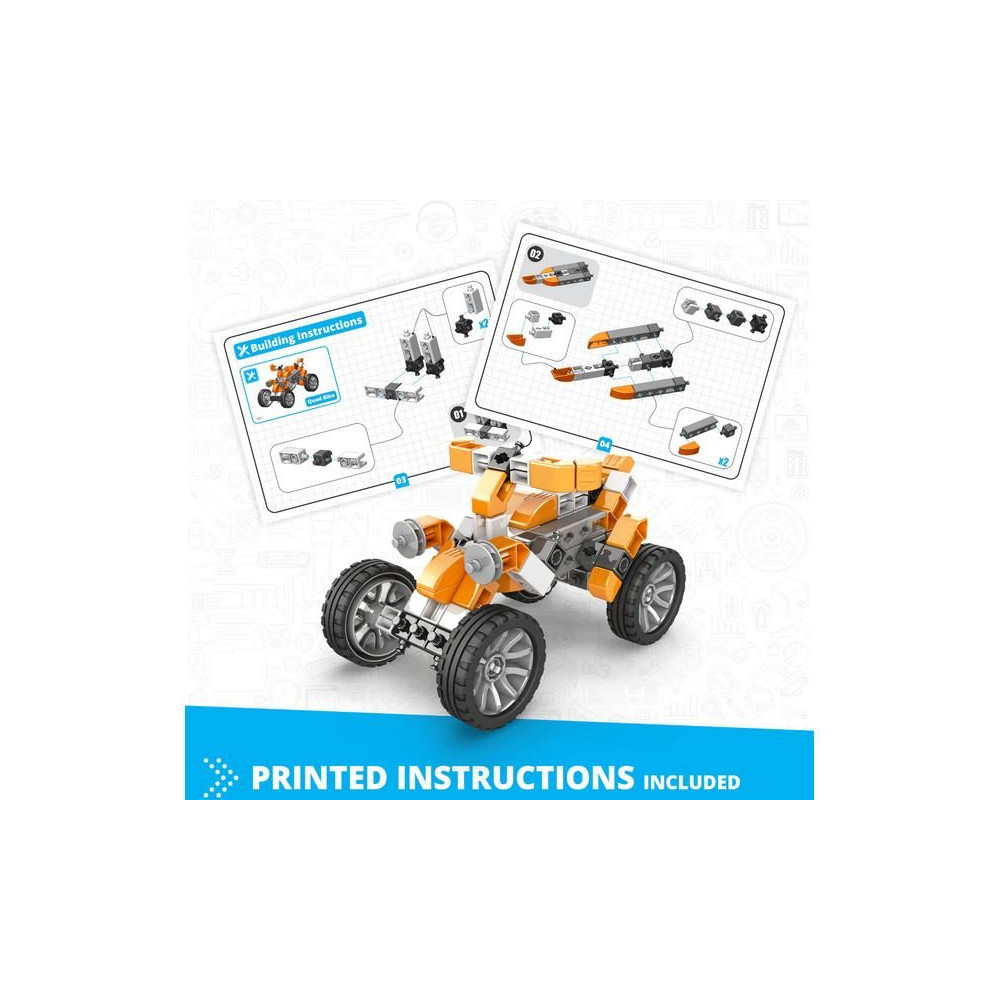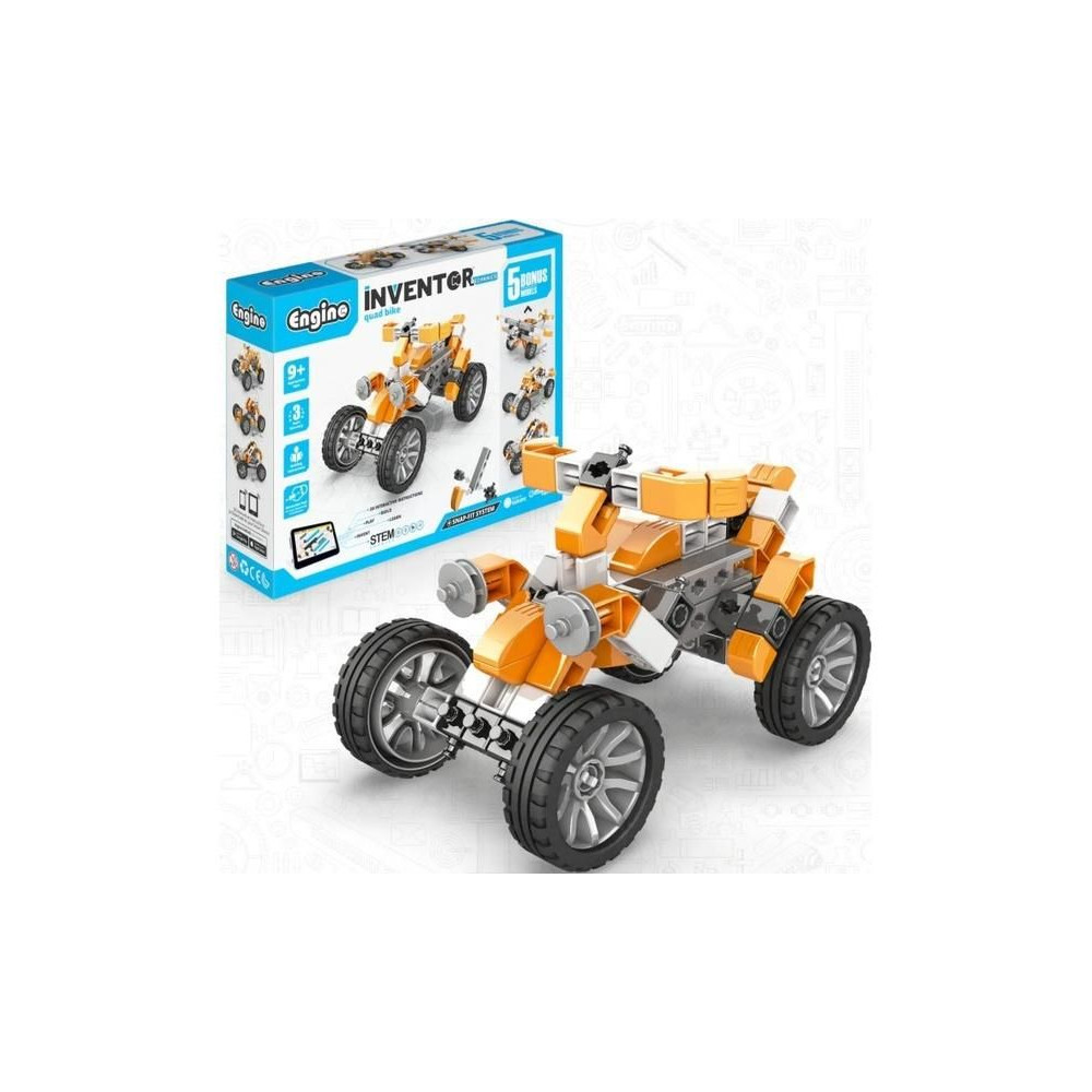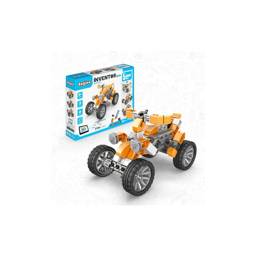 Engino Inventor Mechanics quad kerékpár, 5 különböző quad modell szerelhető össze. Egyszerű kreatív készlet gyerekeknek, lehetőség van más Engino készletek meglévő alkatrészeinek felhasználására. Képes, egyértelmű színes használati utasítás.