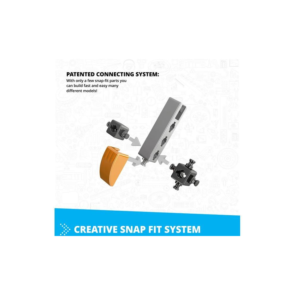 Az INVENTOR MECHANICS sorozat tematikus megközelítést alkalmaz, többféle modelllehetőséggel és egy lenyűgöző főmodellel. Az ENGINO® rendszer szabadalmaztatott alkatrészeket tartalmaz, amelyek mind az esztétikai, mind a műszaki jellemzőket javítják. Ezek az alkatrészek közé tartoznak a nagy pontosságú görgők, a különböző mechanizmusok és az előre gyártott ívelt felületek. Csak meg kell értenie az összeszerelési rendszert, és máris létrehozhatja saját épületalkotásait.