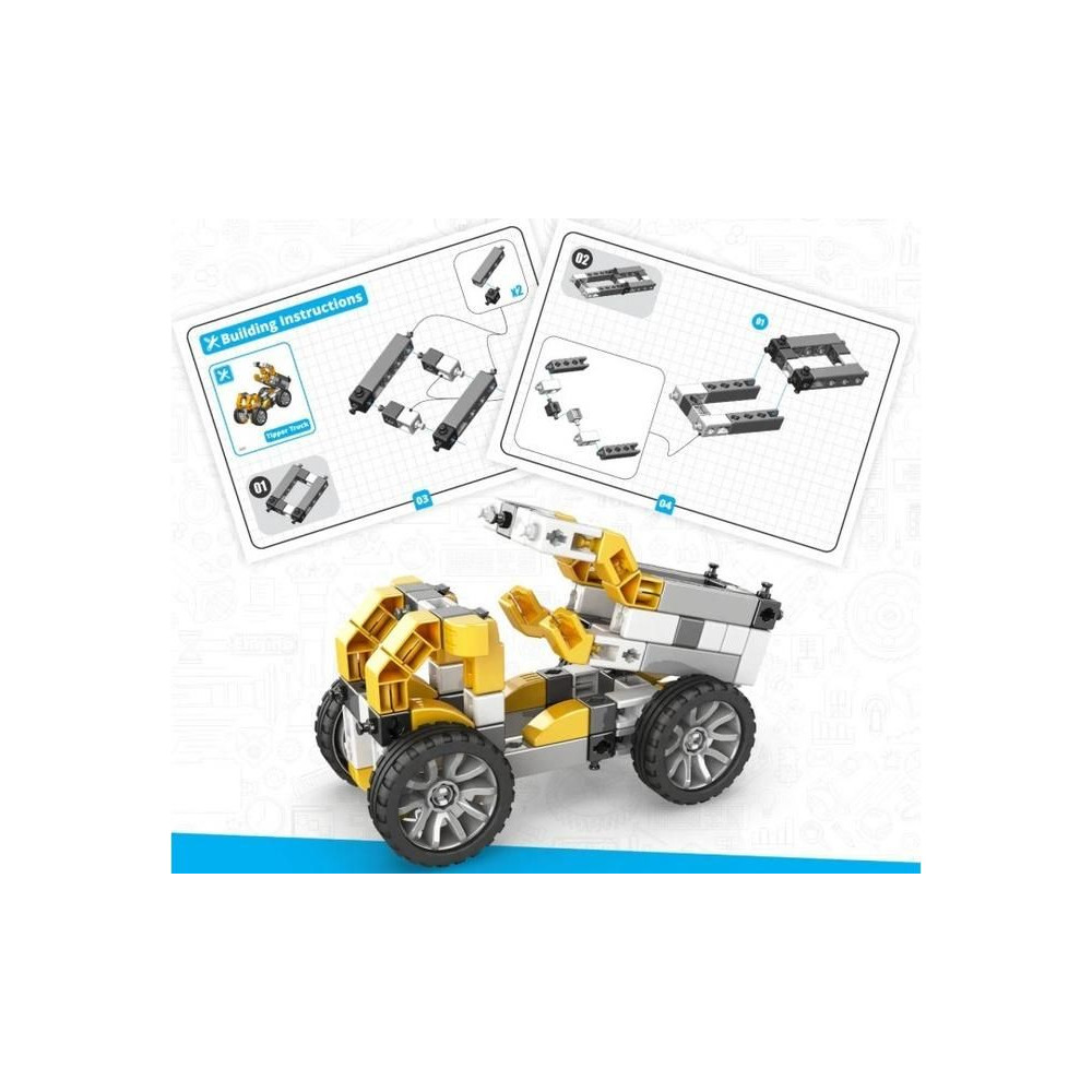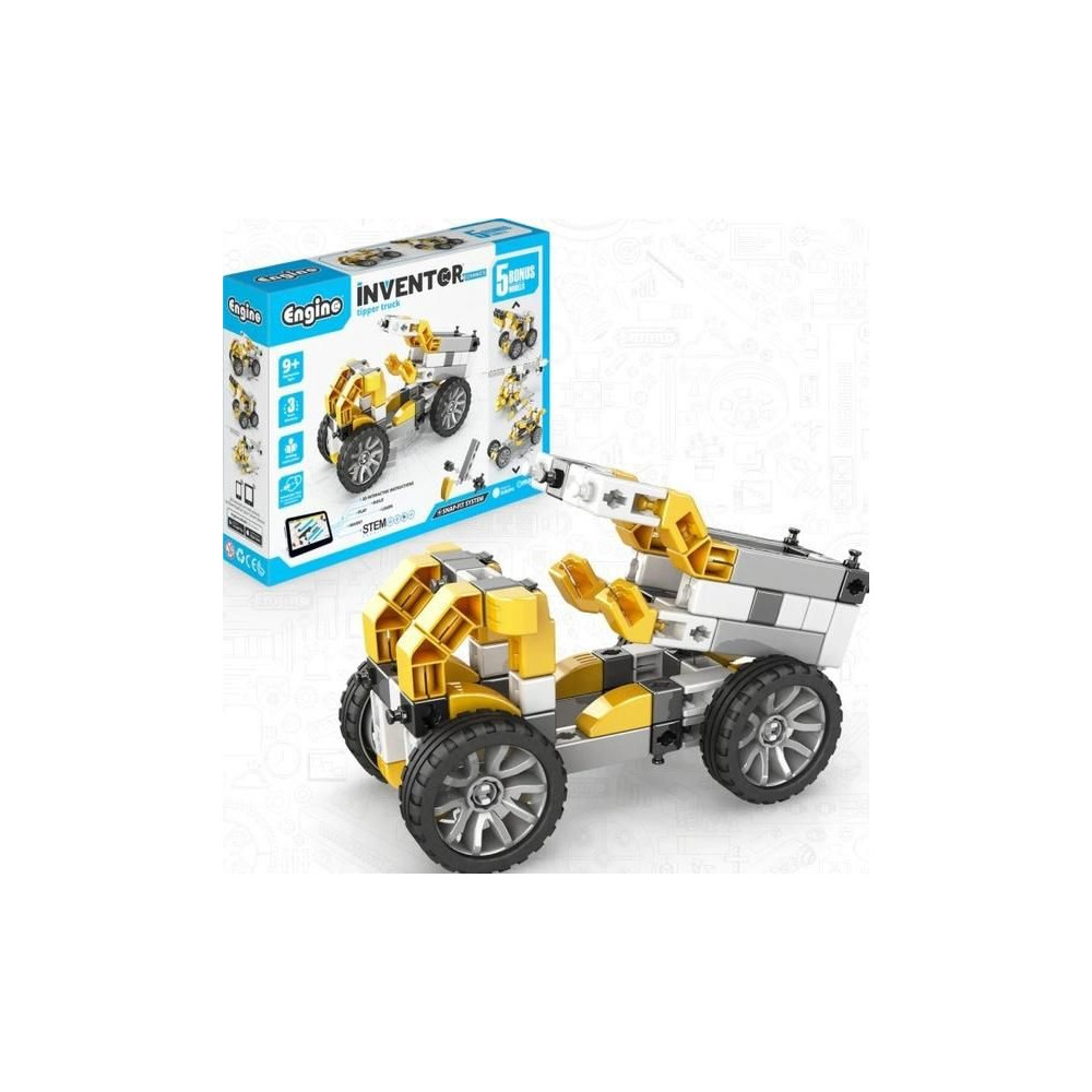 Engino Inventor Mechanika dömper, 5 különböző modell állítható össze, mint például építőipari gépek, helikopter, versenyautó és még sok más. Egyszerű kreatív készlet gyerekeknek, lehetőség van más Engino készletek meglévő alkatrészeinek felhasználására. Képes, egyértelmű színes használati utasítás.