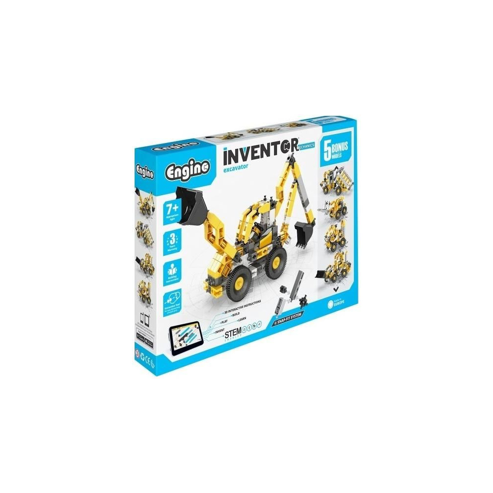 Engino Inventor Mechanics kotrógép, 5 különböző építőipari gépmodell állítható össze. Egyszerű kreatív készlet gyerekeknek, lehetőség van más Engino készletek meglévő alkatrészeinek felhasználására. Képes egyértelmű színes használati utasítás.