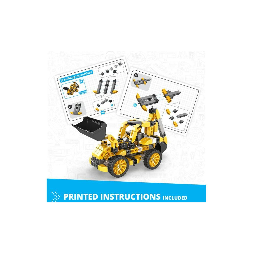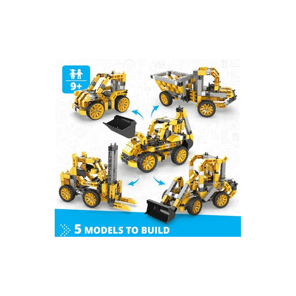 Engino Inventor Mechanics kotrógép készlet 9 éves és idősebb gyerekeknek, 5 különböző építőipari gép modelljét lehet összerakni, mint például teherautó, kotró, rakodó, targonca és autó. Egyszerű kreatív készlet gyerekeknek, melyben lehetőség van más Engino készletek meglévő alkatrészeinek felhasználására. Képes, egyértelmű színes használati utasítás.