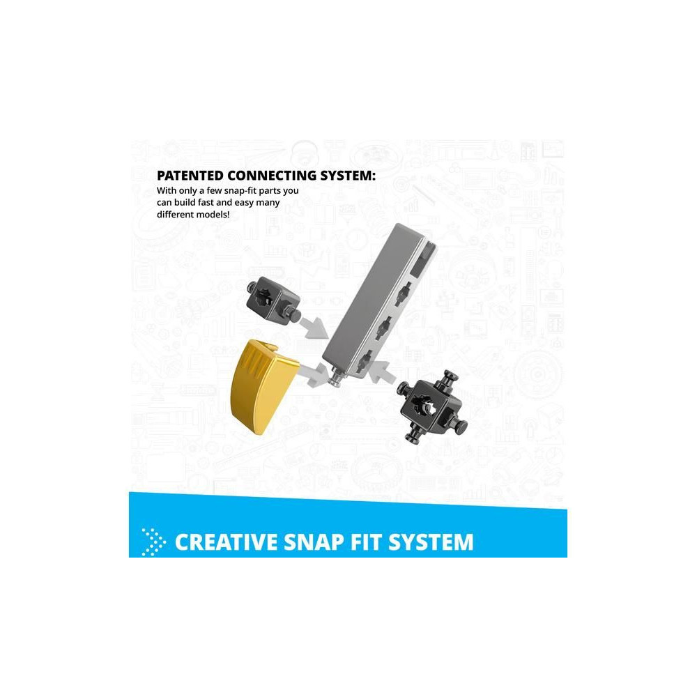 - Innovatív kialakítás: a szabadalmaztatott pattintható csatlakoztathatóság és a többirányú forgócsapok lehetővé teszik, hogy különböző szögekből, akár 6 oldalról egyszerre építkezz.