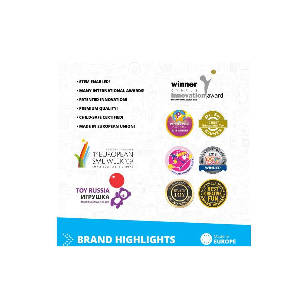 Az Engino már 1,5 éves kortól segíti a gyermekek kritikus gondolkodásának, térbeli képzelőerejének és szem-kéz koordinációjának fejlődését. Megtanítja őket együttműködni, problémamegoldásokat találni és az elméletet a gyakorlatban alkalmazni. A pedagógusok és a szülők számára az Engino egy teljes STEM tanulási rendszert kínál, amely a tudományos alapelvek széles körét lefedi, és elősegíti a játékon keresztül történő tanulást. Az Engino büszke a biztonsági és környezetvédelmi szempontokra.