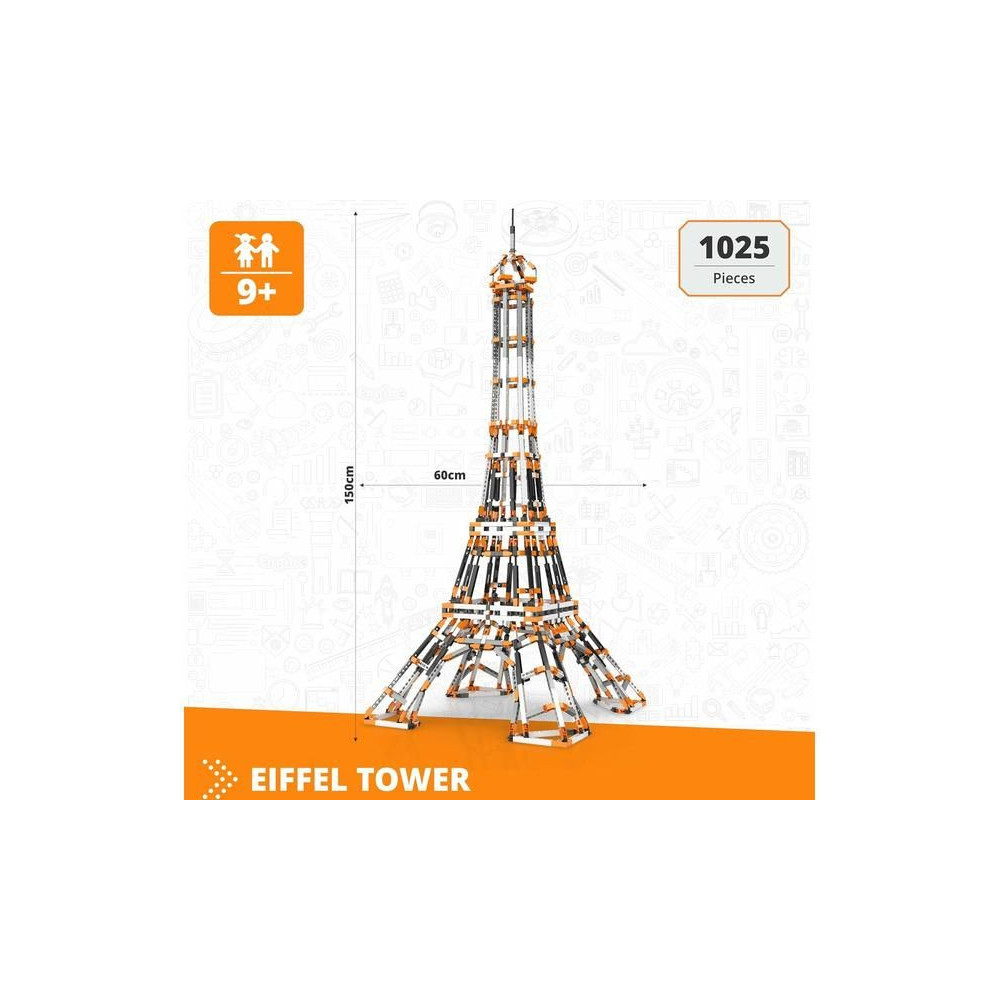A kreatív Engino Mega Builds - Eiffel-torony készlet segítségével a gyerekek megépíthetik Párizs 1,5 méter magas nevezetességét, a világhírű Eiffel-tornyot! A készlet 9 éves kor felettieknek készült, a készlet 1025 alkatrészt tartalmaz, amelyek más épületekben is felhasználhatók, Szabadalmaztatott rendszerű alkatrészek összekapcsolása.