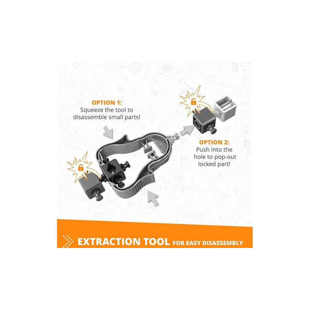 - Innovatív kialakítás: a szabadalmaztatott pattintható csatlakoztathatóság és a többirányú forgócsapok lehetővé teszik, hogy különböző szögekből, akár 6 oldalról egyszerre építkezz.